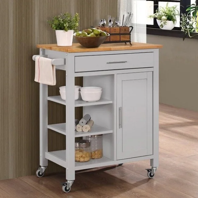 Porch & Den Scotsmeadow Solid Wood Kitchen Cart with Natural Wood Top Grey