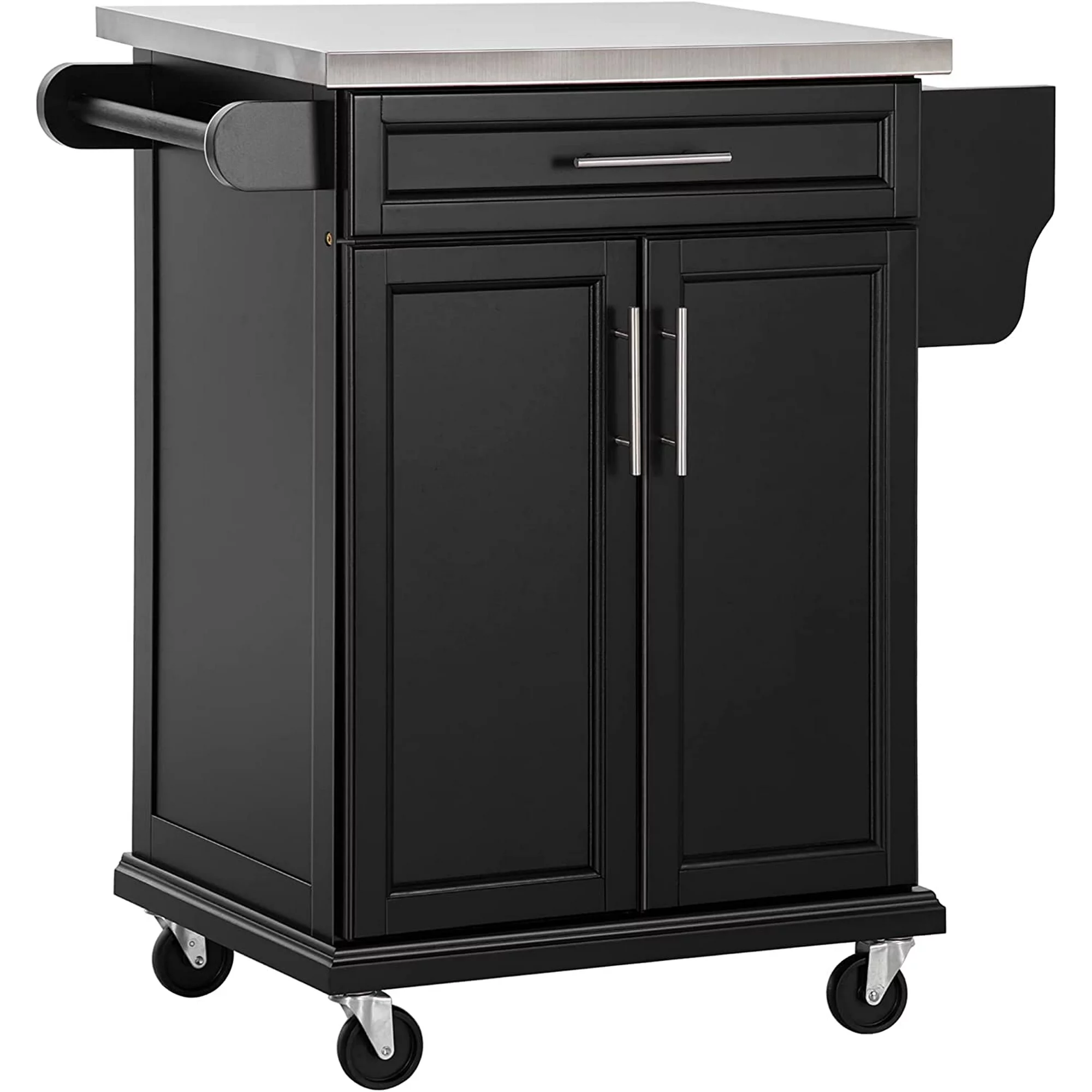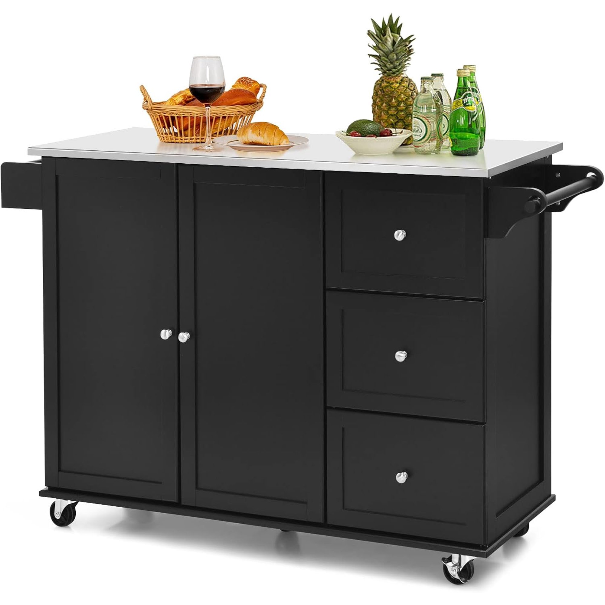 KEMANHUAN Kitchen Island Cart with Stainless Steep Top, Rolling Mobile Kitchen Island with Storage and Towel Rack, Kitchen Trolly Cart on Wheels for Dining Room, Kitchen, Restaurant (Black)