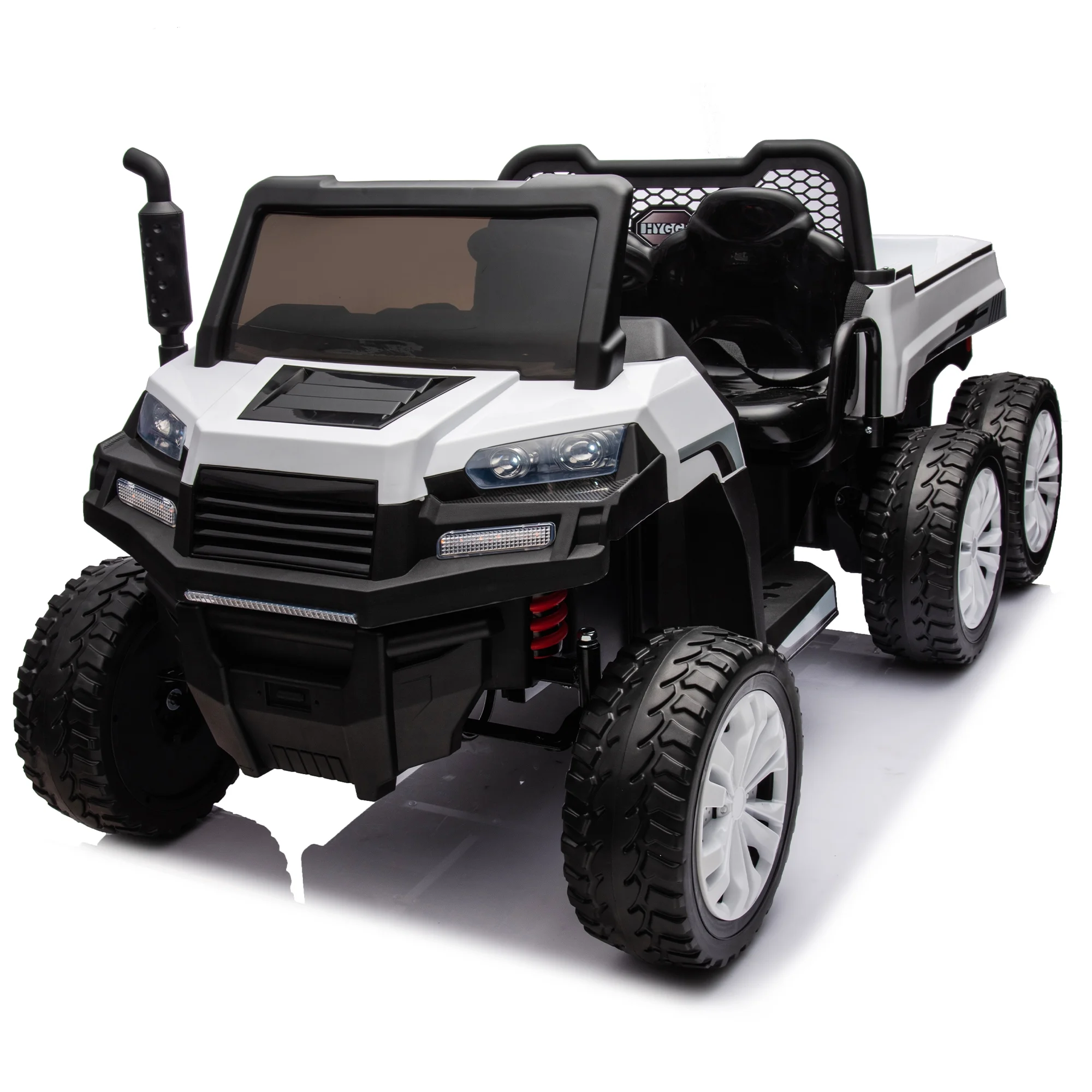 Pouseayar 24V 2-Seater UTV-XXL Ride On Truck with Dump Bed, Ride On Car with Remote Control, Bluetooth, LED Light for Kids 3-8 Years Old, White