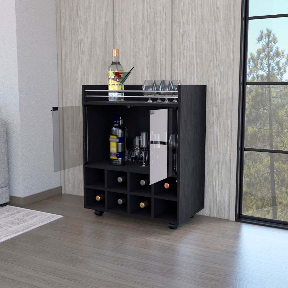 Pouseayar 8-Bottle Rack Bar Cart with Two Glass Doors, Rolling Beverage Cart, Coffee Bar with Wine Rack