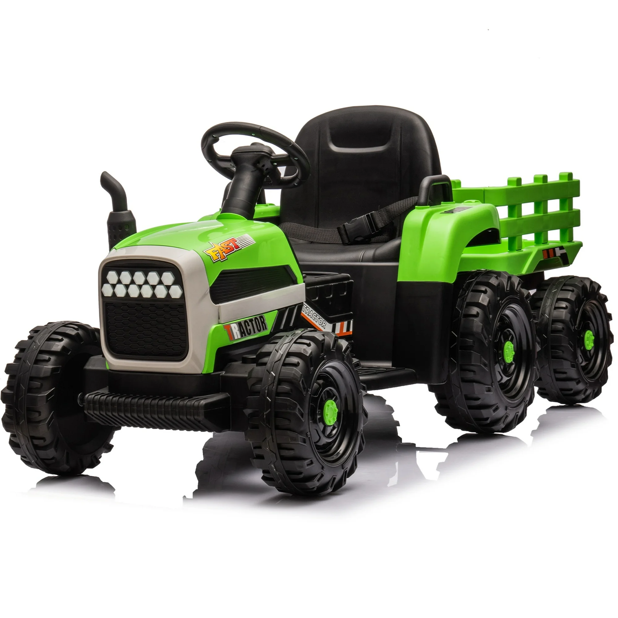 Powered Ride on Toy Tractor, 24V Kids Ride on Car with Remote Control, Electric Vehicles for Kids Toddlers 3-6 Years with 3 Speeds, Bluetooth, Music Player, LED Light, Rear Wheel Suspension, Green