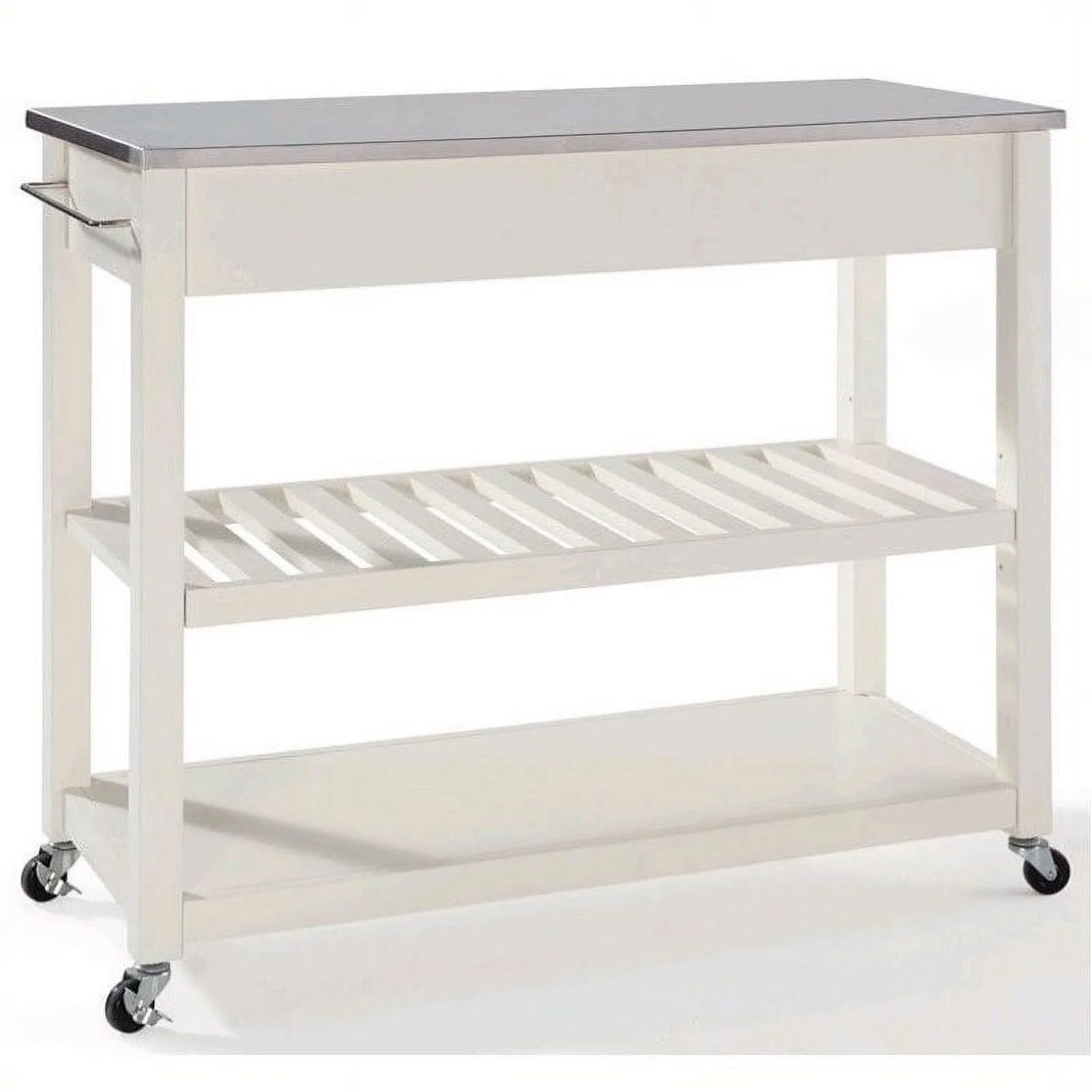 Kingfisher Lane Kitchen Cart Island Stainless Steel Top in White