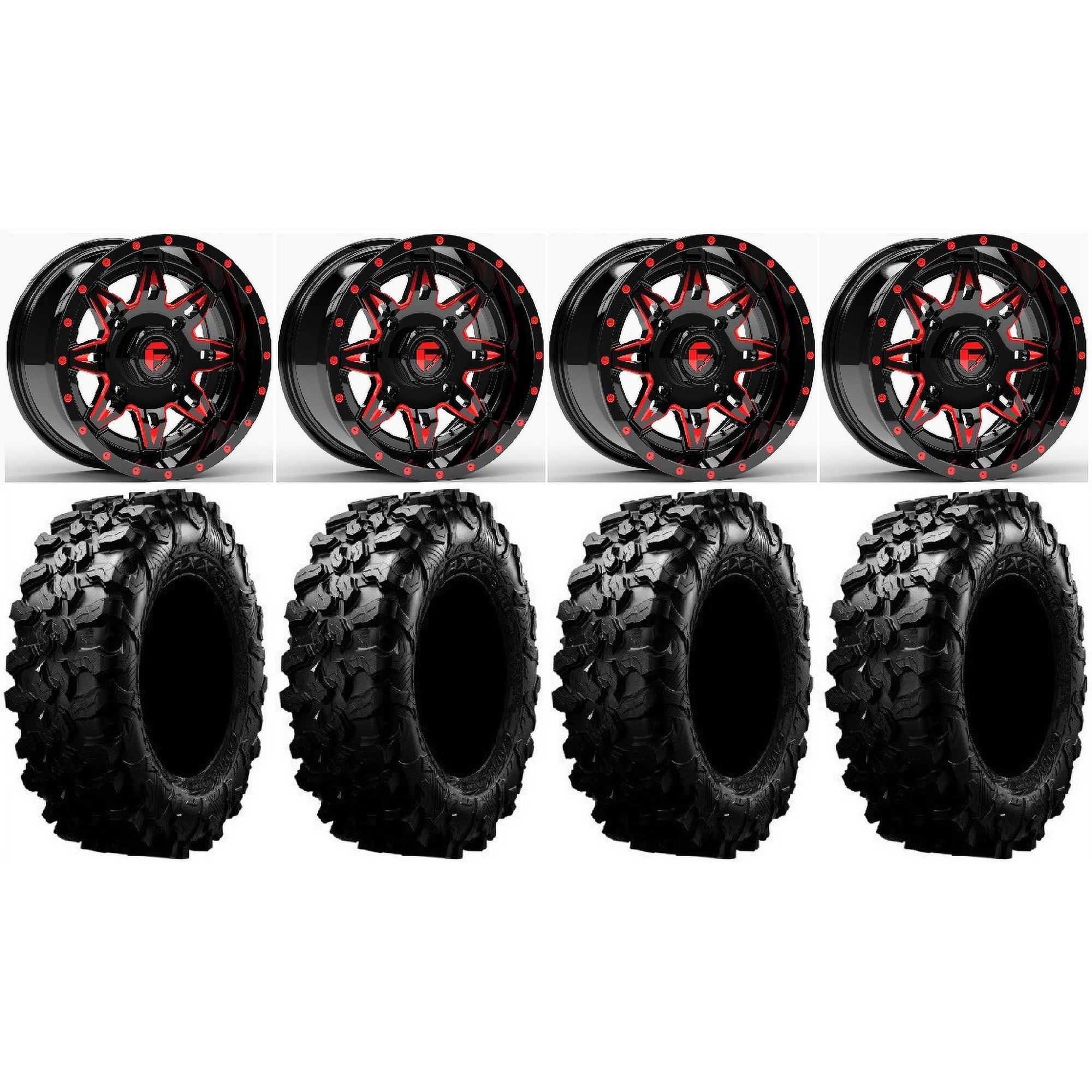 Fuel Lethal Red 15" Wheels 29" Carnivore Tires Kawasaki Mule Pro FXT