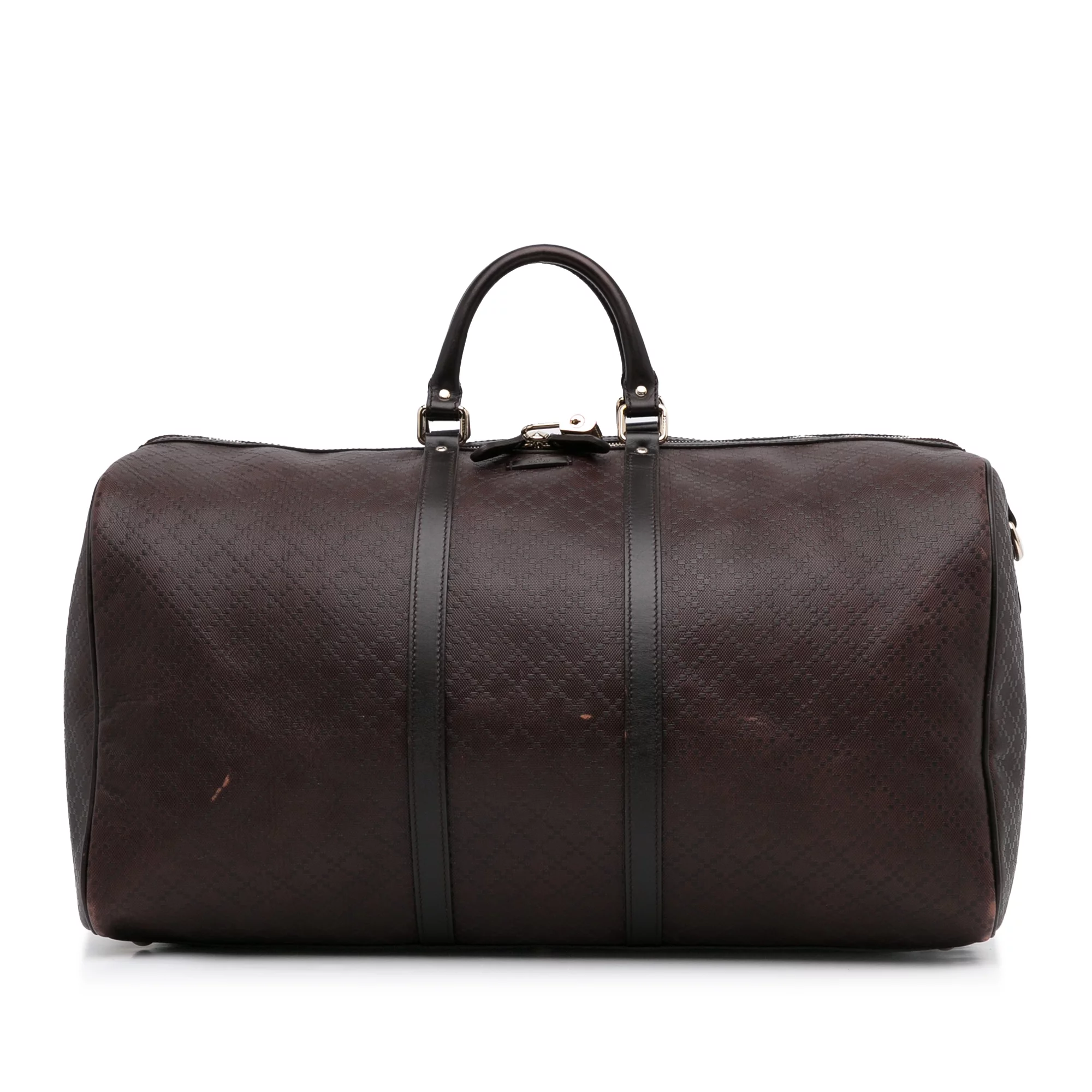 Pre-Owned Authenticated Gucci Large Diamante Bright Carry-On Duffle Bag Calf Leather Brown Travel Bag WeekenderBag Unisex (Good)