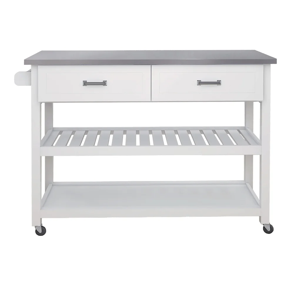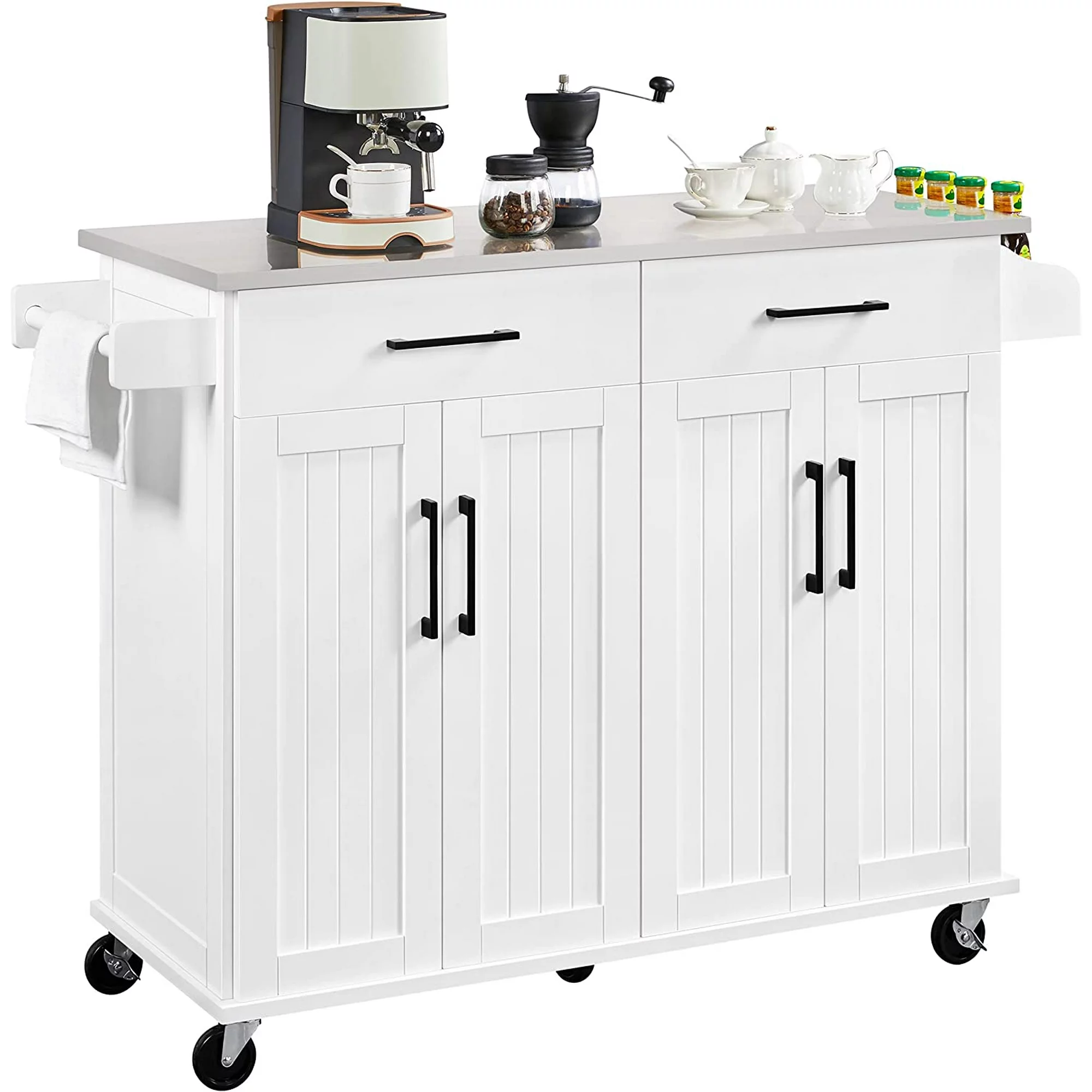 Kitchen Cart with Stainless Steel Counter Top 2 Drawers Rolling Kitchen Cart On Wheels for Home Kitchen Dining Room White