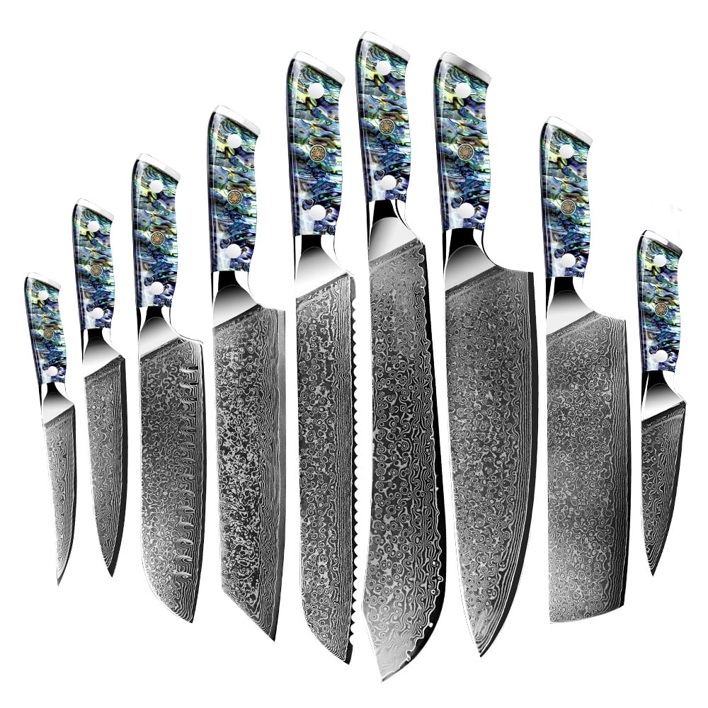 Kitchen Knife Set VG10 Damascus Steel Japanese Chef Knives Santoku Knife 67 Layers Carving Paring Utility Fruit Vegetable Slicing Knives Abalone Shell Full Tang Handle