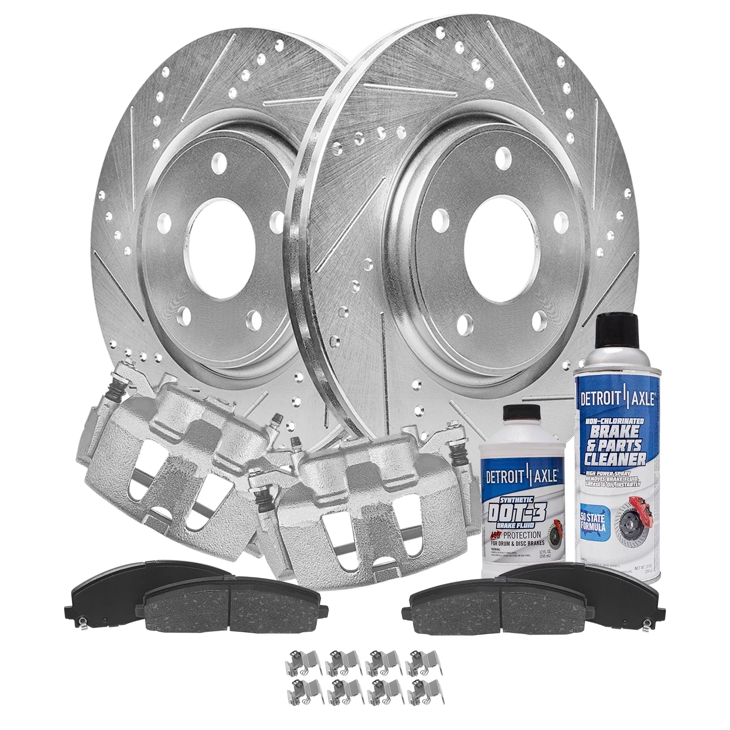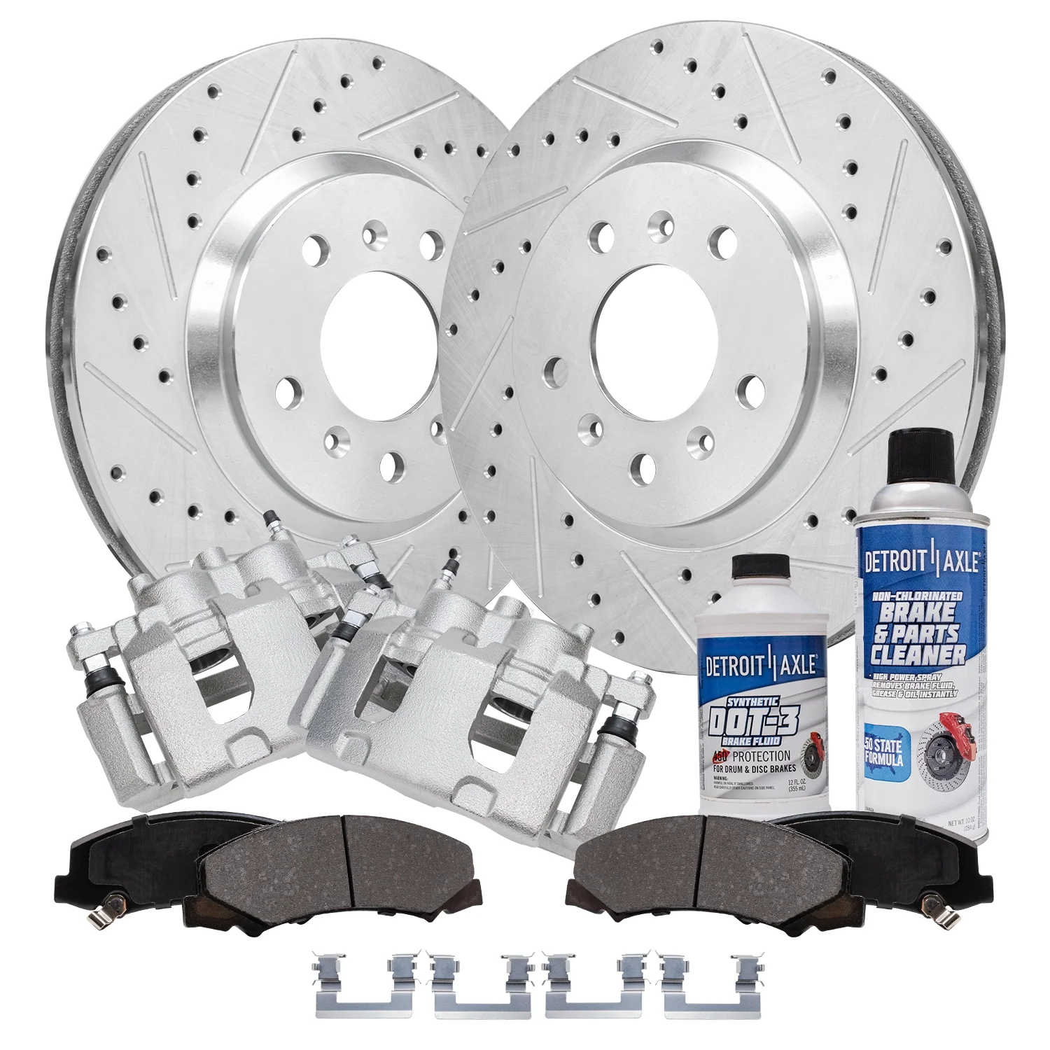Detroit Axle - Front Brake Kit for 2006-2013 Chevy Impala, 2006-2011 Buick Lucerne, 2006-2007 Monte Carlo, Drilled Brake Rotors Ceramic Brake Pads Brake Calipers Replacement