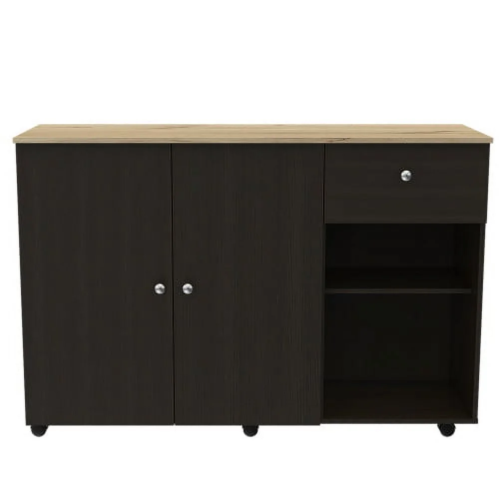 Knubmt Kitchen Island with Open Shelf and Cabinet, Kitchen Cart with Inner Shelf and Wheels, Black