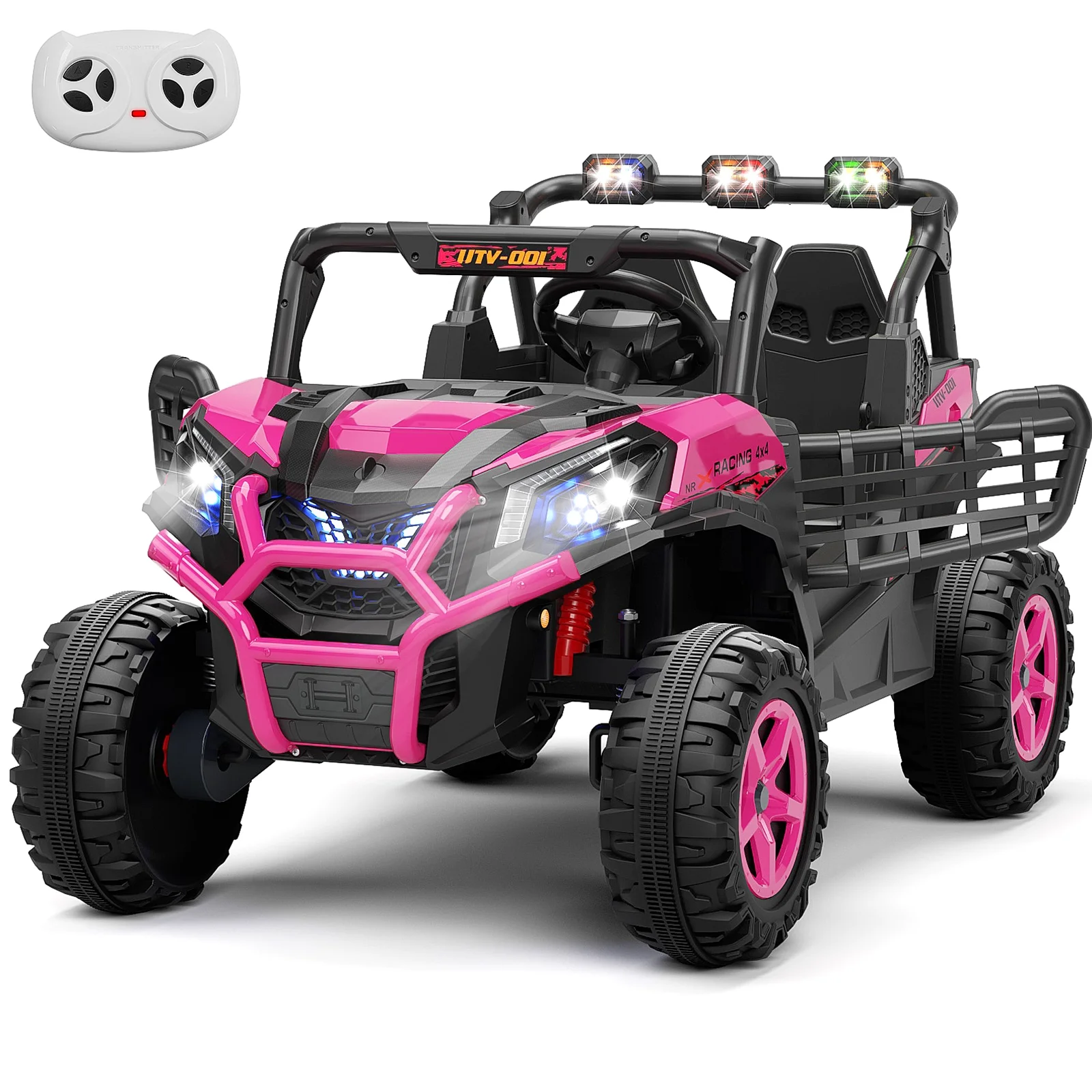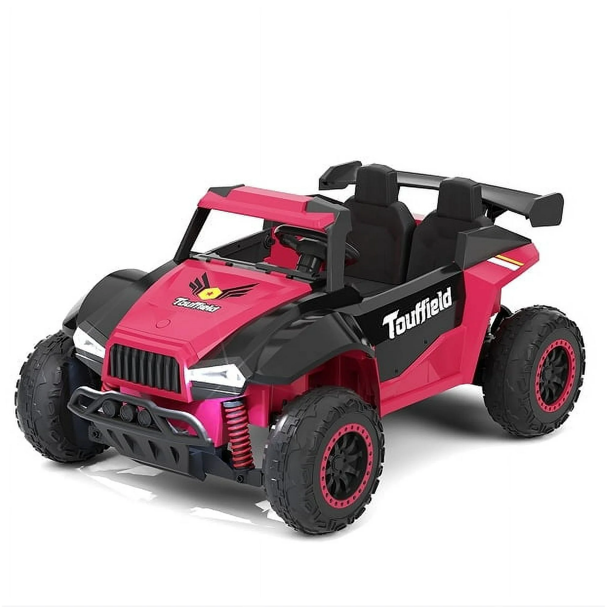 KORIMEFA Kids 2 Seater 12V Electric Ride on Toy Car, Electric Off-Road UTV with 4*200W Motor, Remote Control, Spring Suspension, LED Lights ,Bluetooth Music, RoseRed