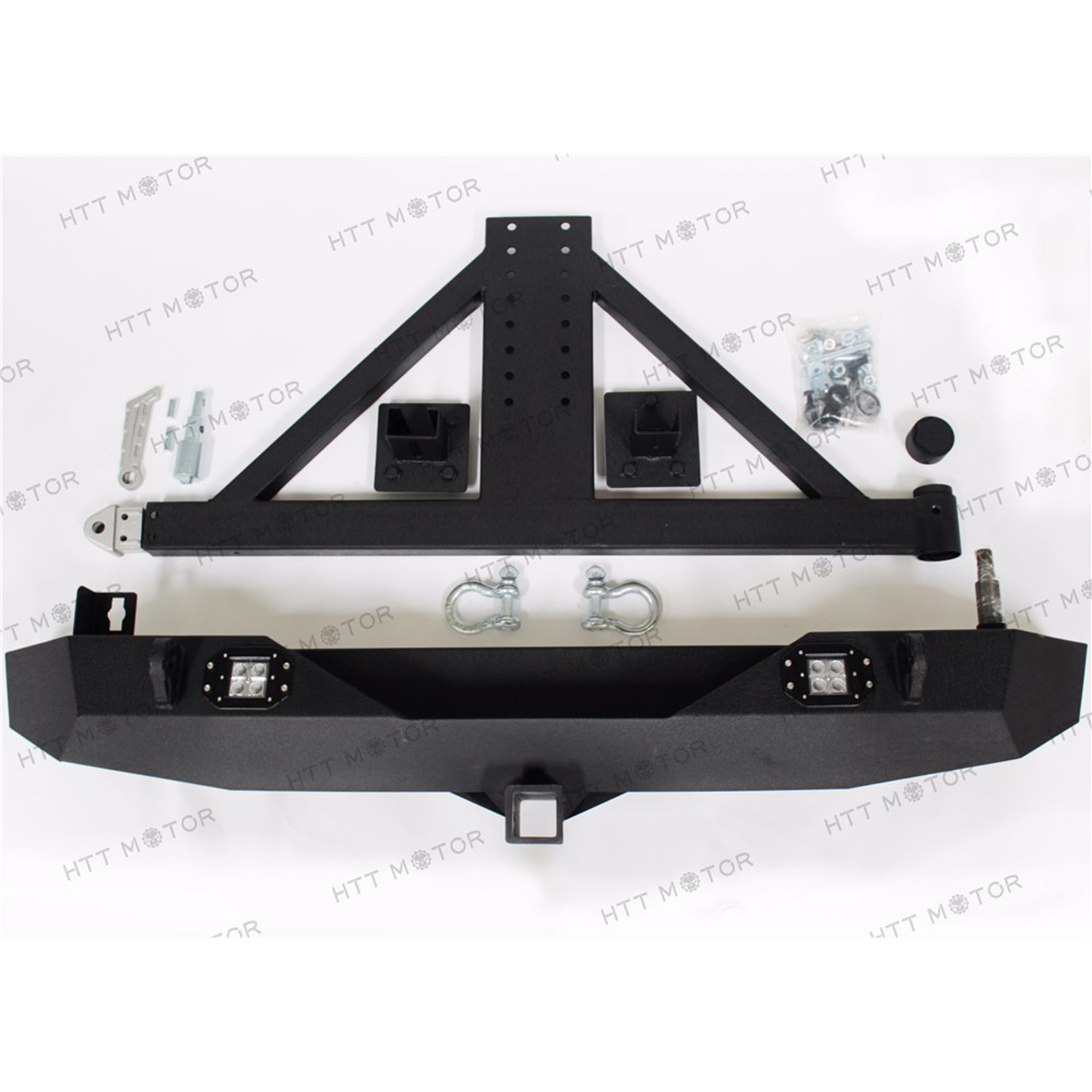 HTTMT- For 07-16 Jeep Wrangler JK Rock Crawler Rear Bumper W/2 LED Lights &Tire Carrier