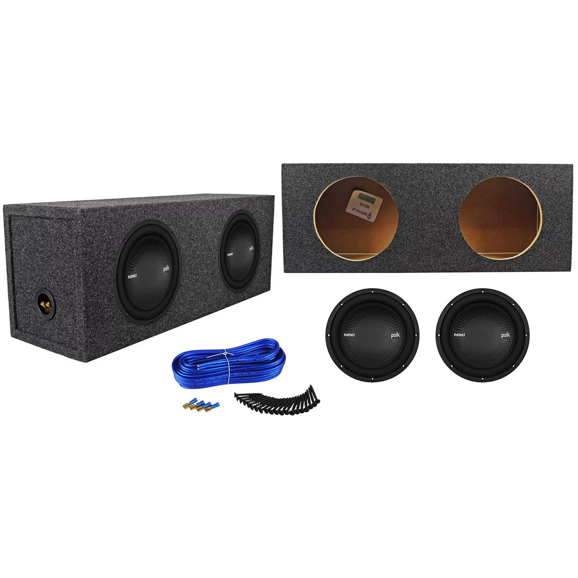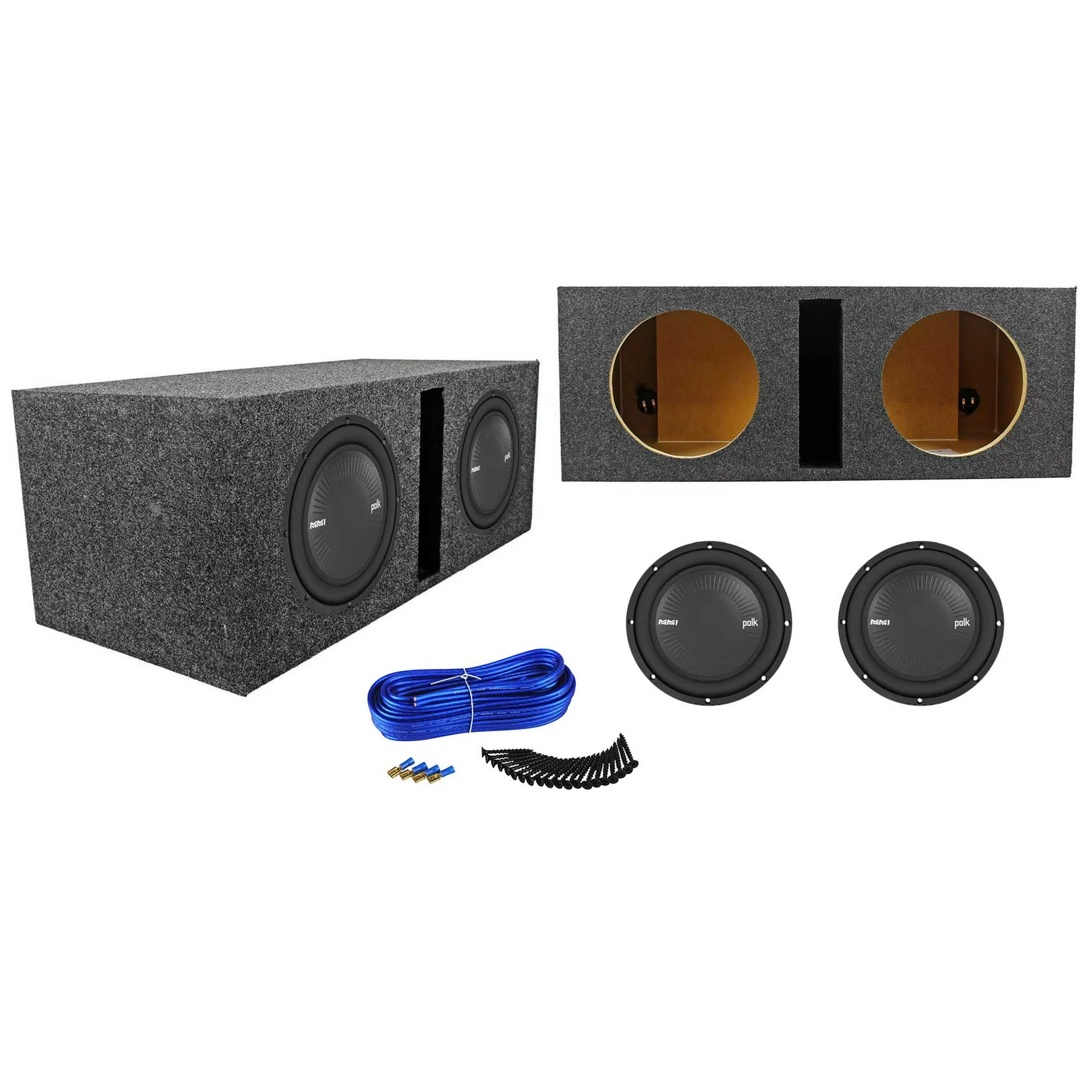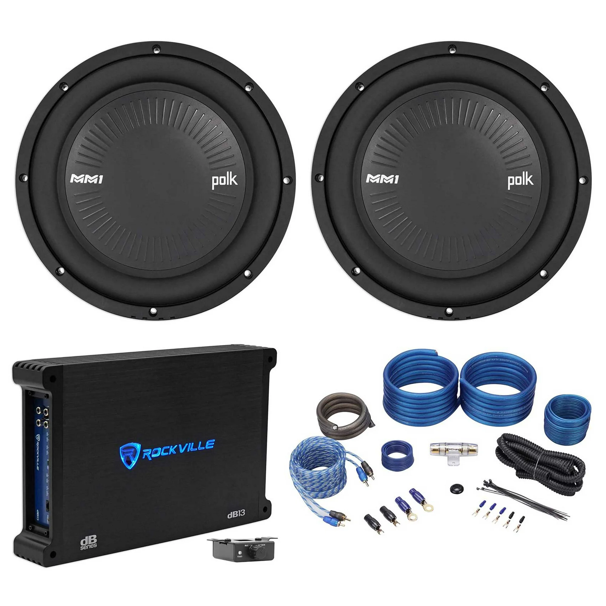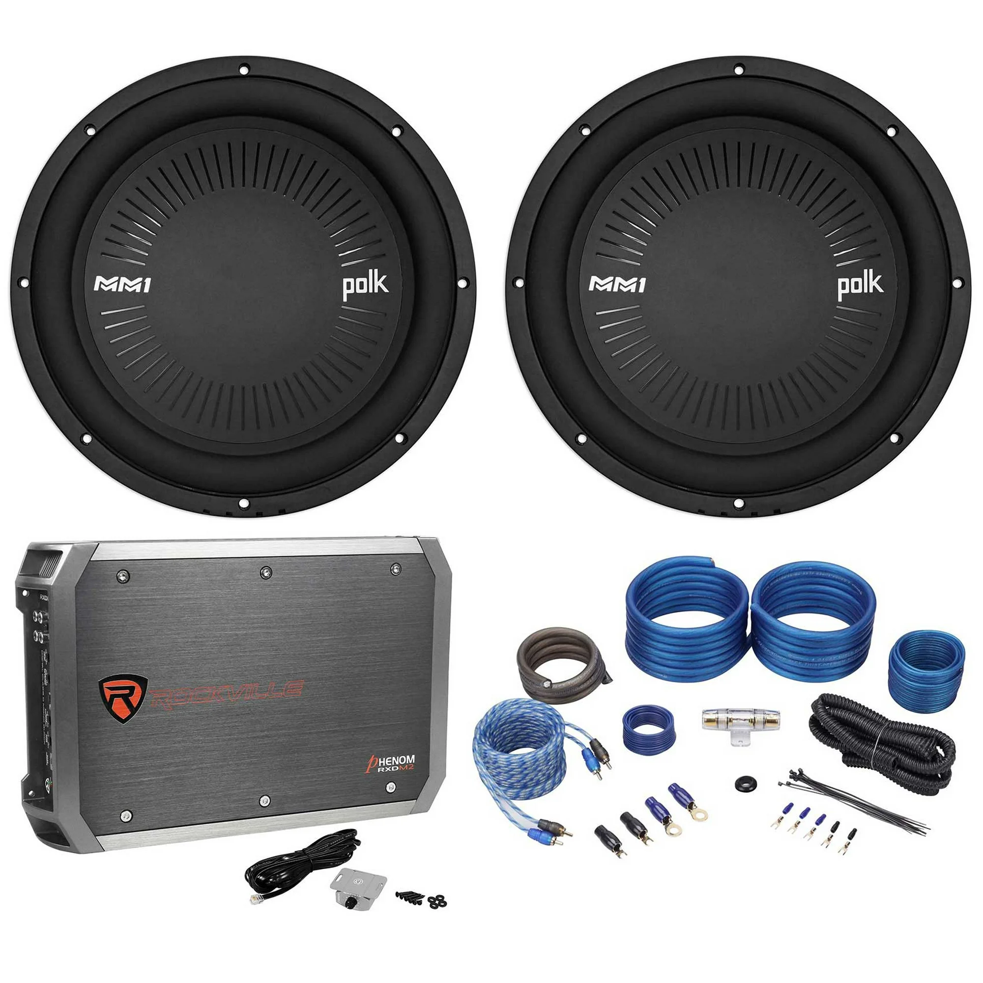 (2) Polk Audio MM1042SVC 10 2400 Watt Car Subwoofers+Mono Amplifier+Amp Kit