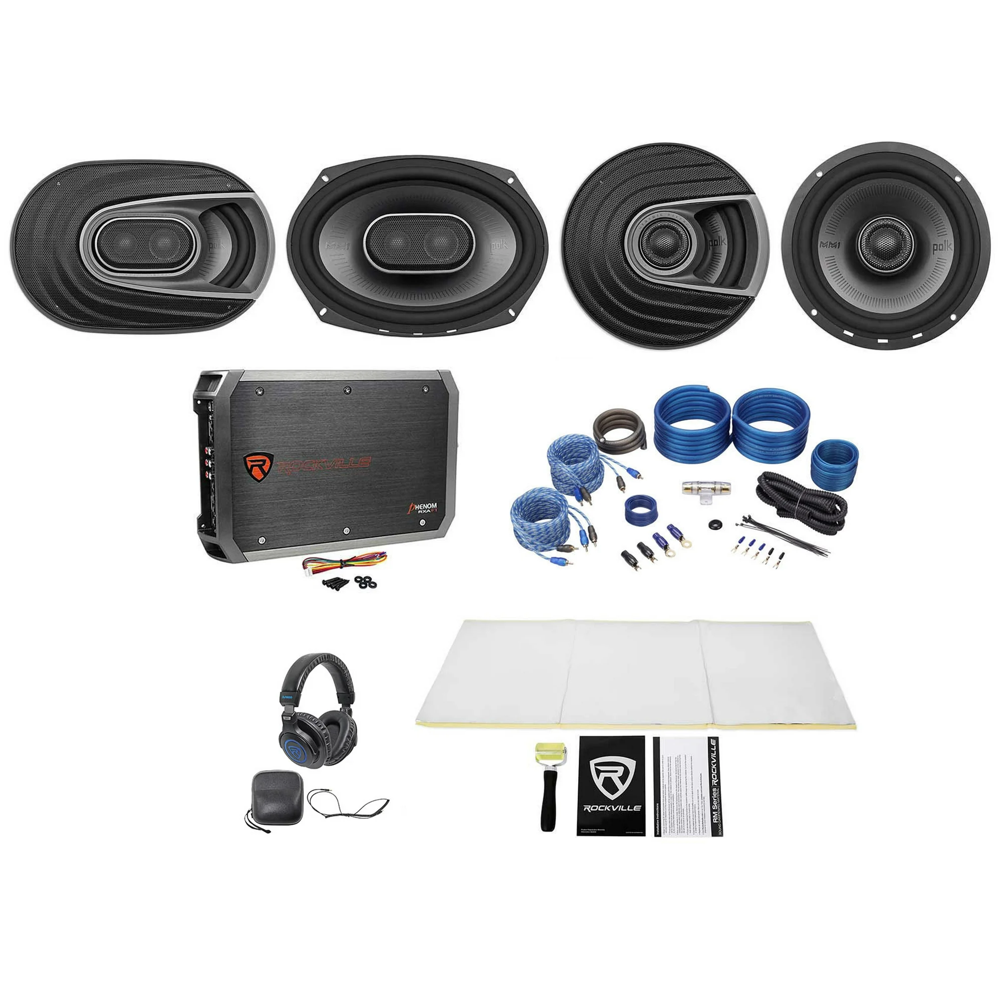 2) Polk Audio MM692 6x9+MM652 6.5" Car Speakers+Amp+Wire Kit+Rockmat+Headphones