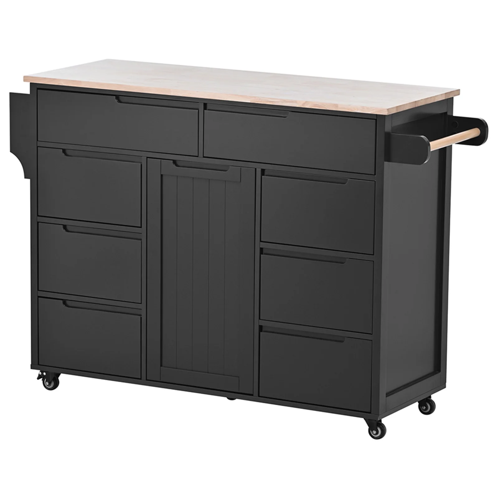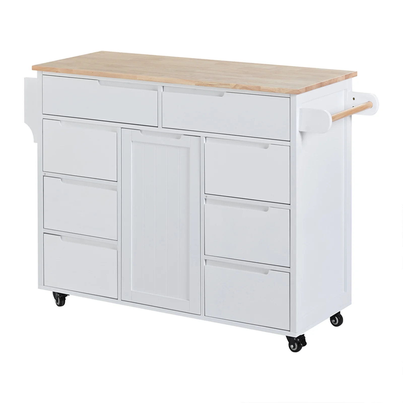 Kselythan Kitchen Island With Storage Cabinet Rubber Wood Countertop Flatware Organizer With Spice Rack Towel Rack With 8 Handle-Free Drawers Kitchen Cart on 5 Lockable Rollers For Kitchen