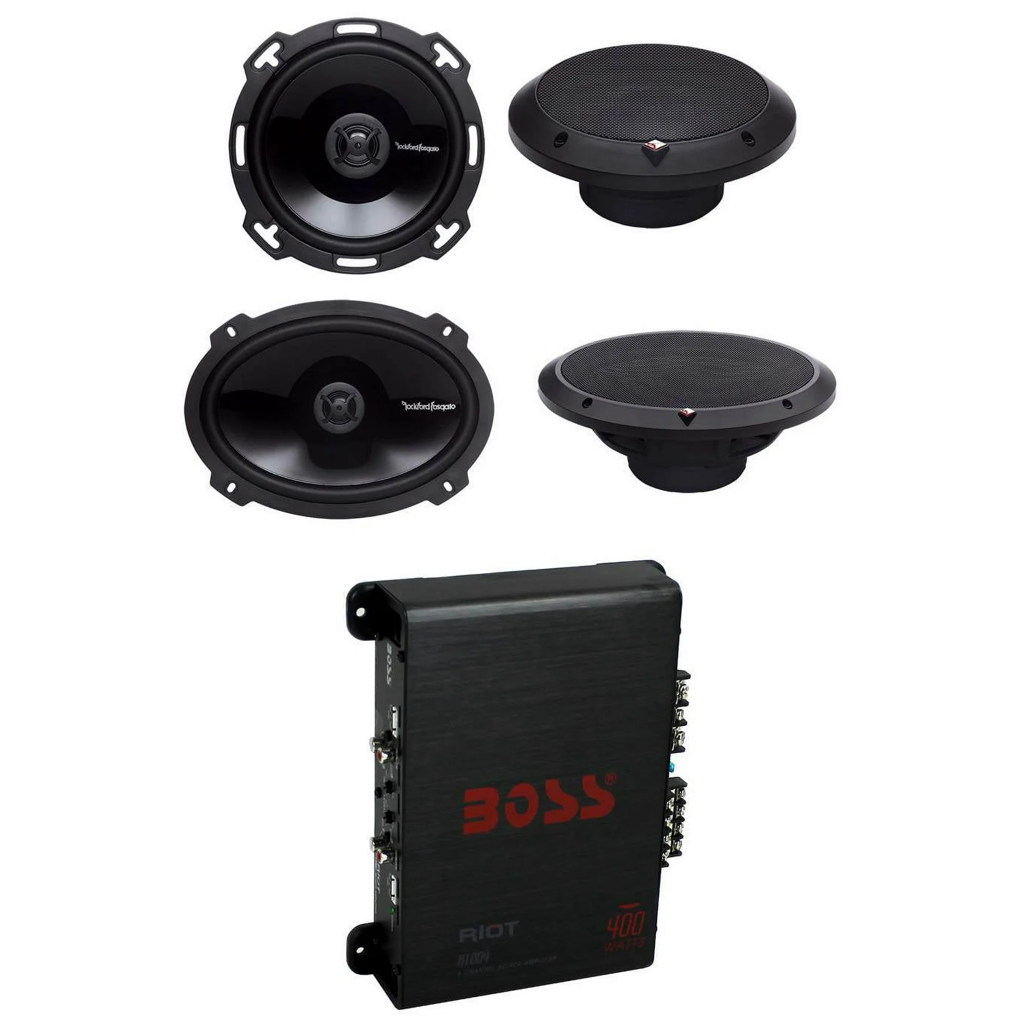 2) Rockford Fosgate P1650 6.5" 110W + 2) 6x9" 150W 2-Way Car Speakers + 400W Amp