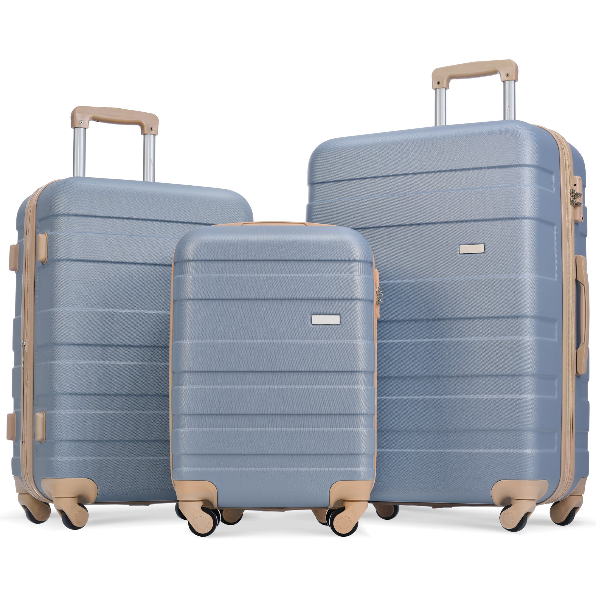 KUUFER 3 Piece Set Suitcase Spinner Hardshell Lightweight TSA Lock, Expandable Carry-on Luggage Set, 20" 24" 28", Blue-Gray