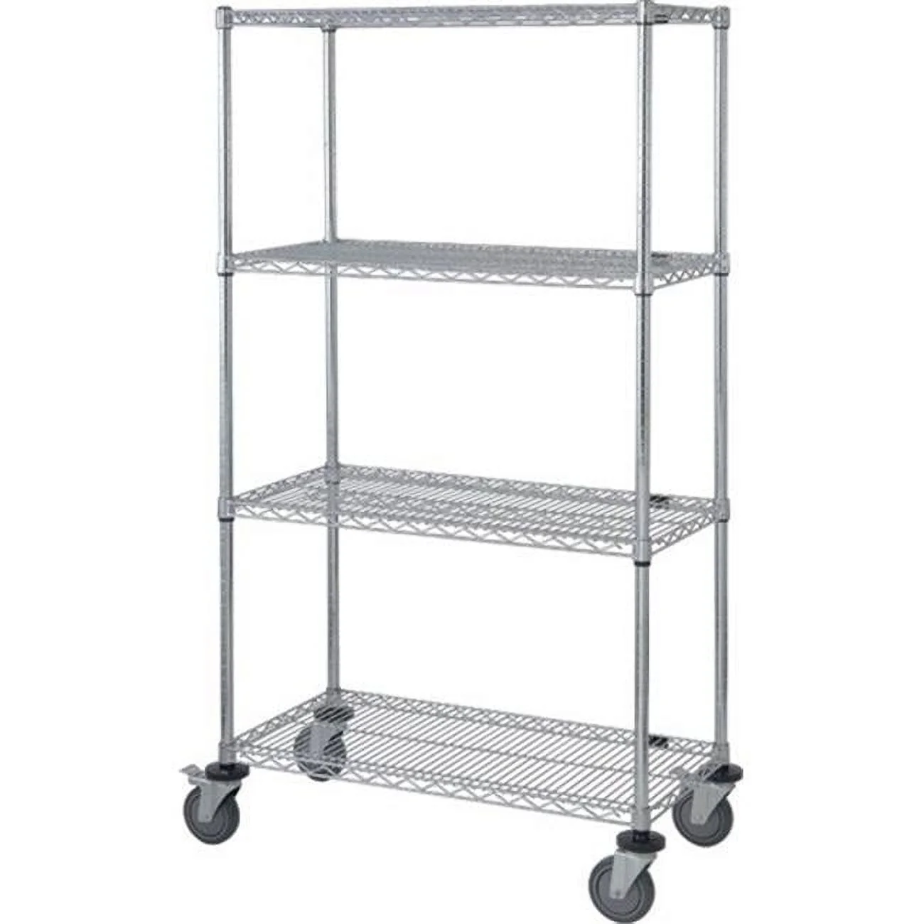 Quantum Storage Chrome Wire Shelving 4-Shelf Stem Caster Cart - 74 in.