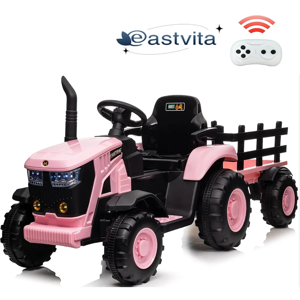 EastVita 12V Ride on Tractor, Battery Powered Electric Tractor 35W Dual Motors Ride on Car Farm Tractor for Kids Bluetooth Music/USB,3 Gear Shift,Safety Belt,7-LED Lights