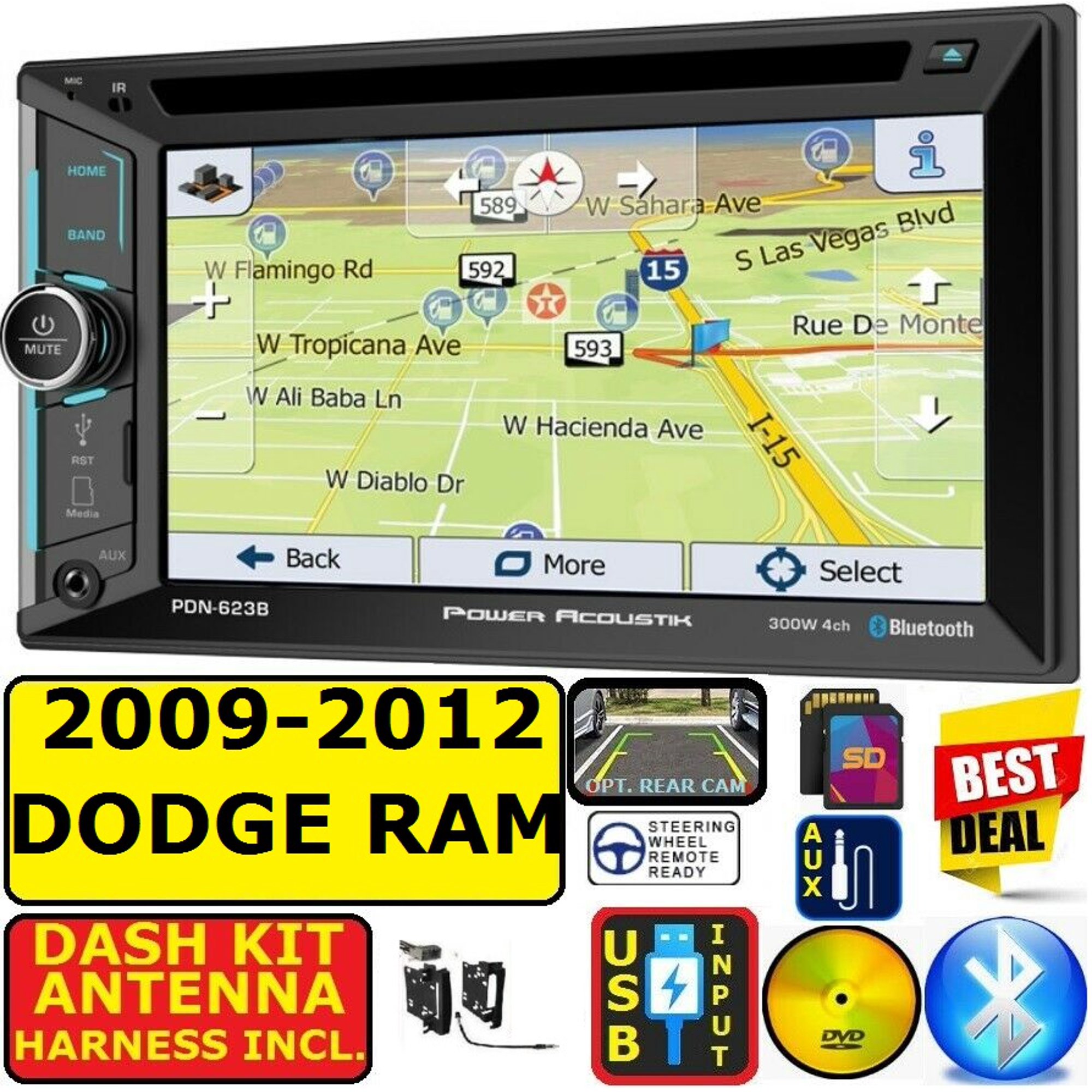 2009-2012 DODGE RAM BLUETOOTH CD/DVD AUX USB CAR RADIO STEREO PKG INCLUDES VEHICLE SPECIFIC INSTALLATION HARDWARE INCL. DASH KIT, WIRE HARNESS, AND ANTENNA ADAPTER