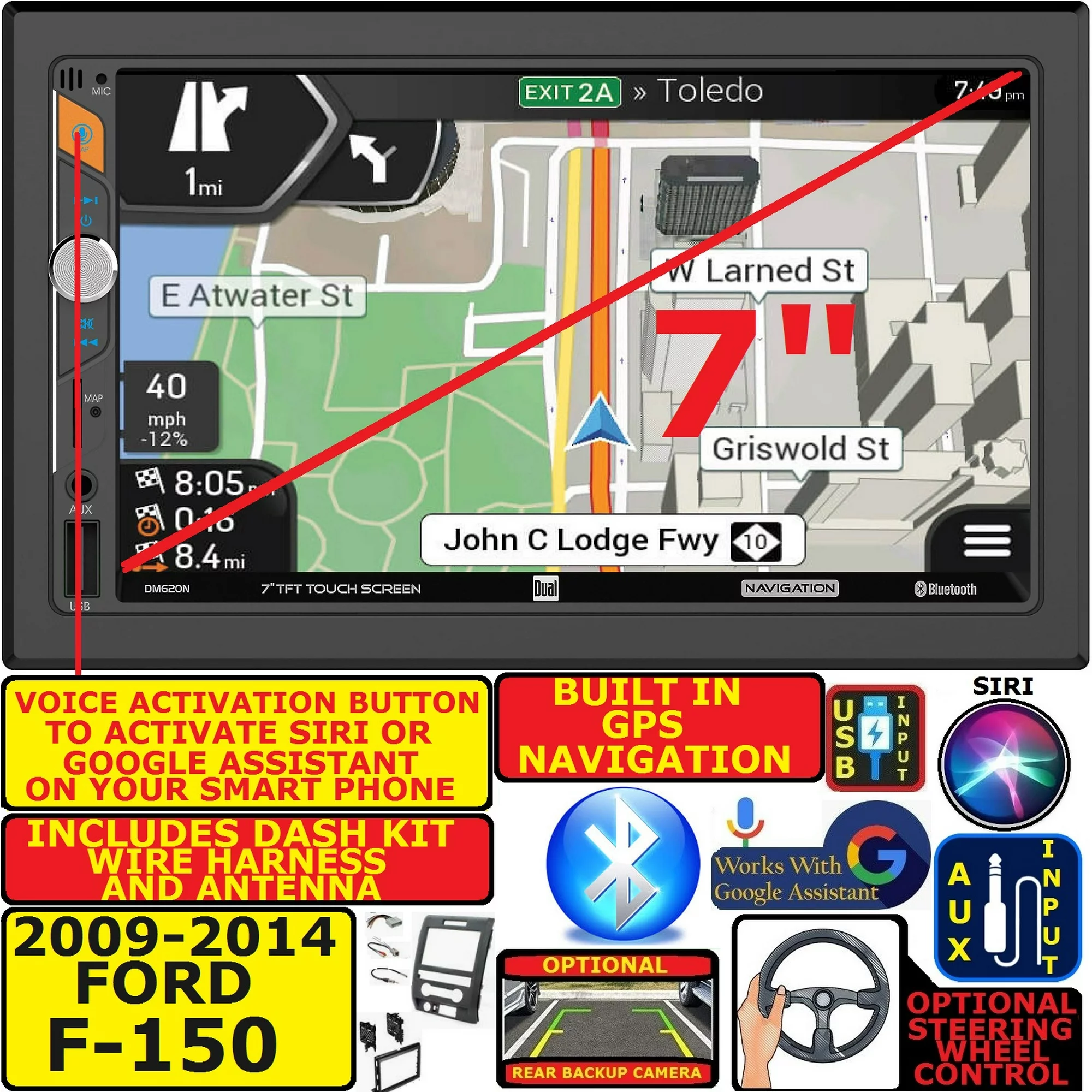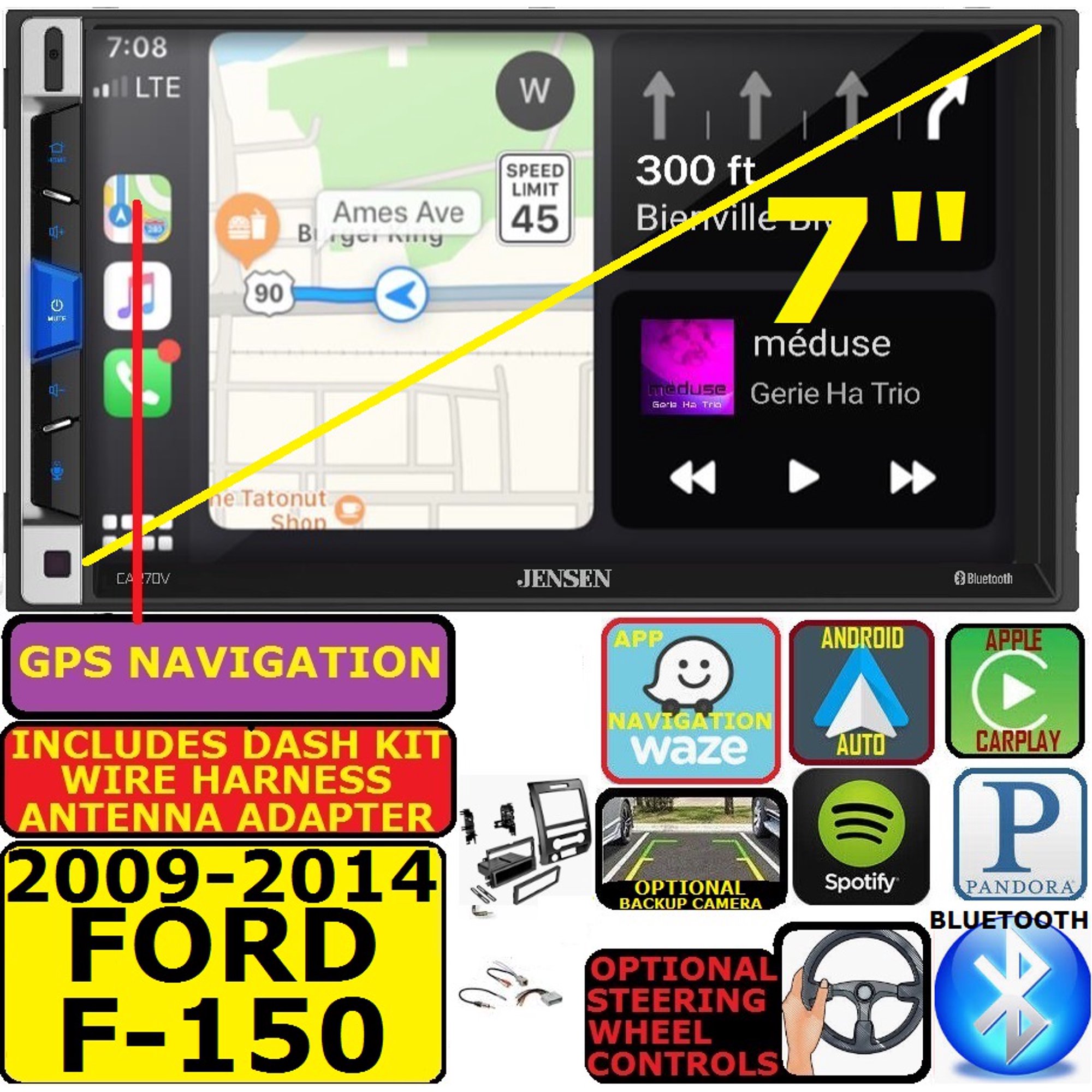 2009-14 FORD F150 GPS NAV APPLE CARPLAY ANDROID AUTO BLUETOOTH CAR RADIO STEREO