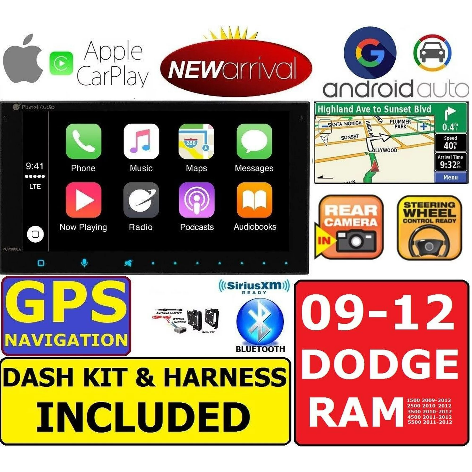 2009-2012 DODGE RAM GPS Navigation APPLE CARPLAY ANDROID AUTO CAR STEREO