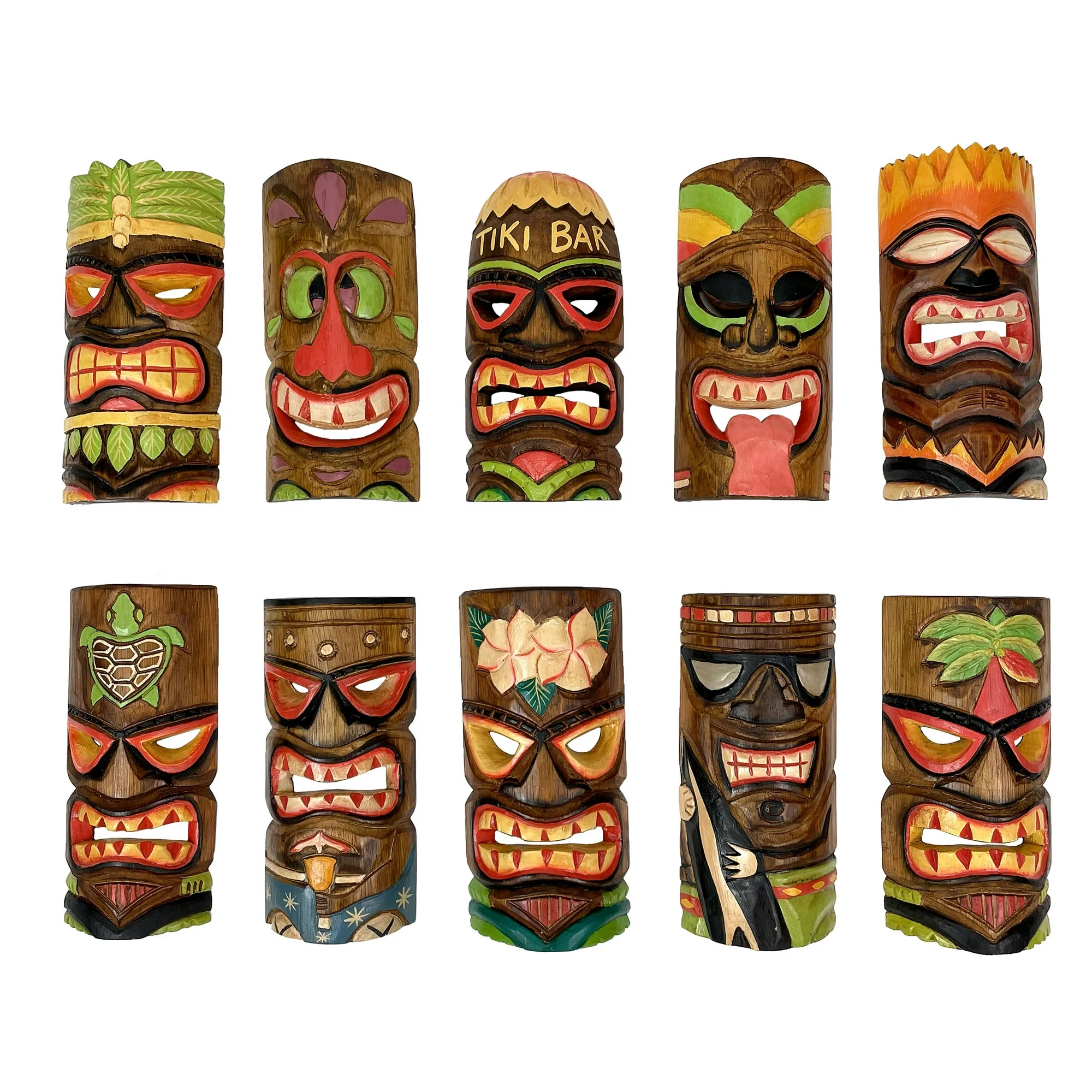 Zeckos Hand Carved Wood Tiki Masks Polynesian 10 inch 10 Piece
