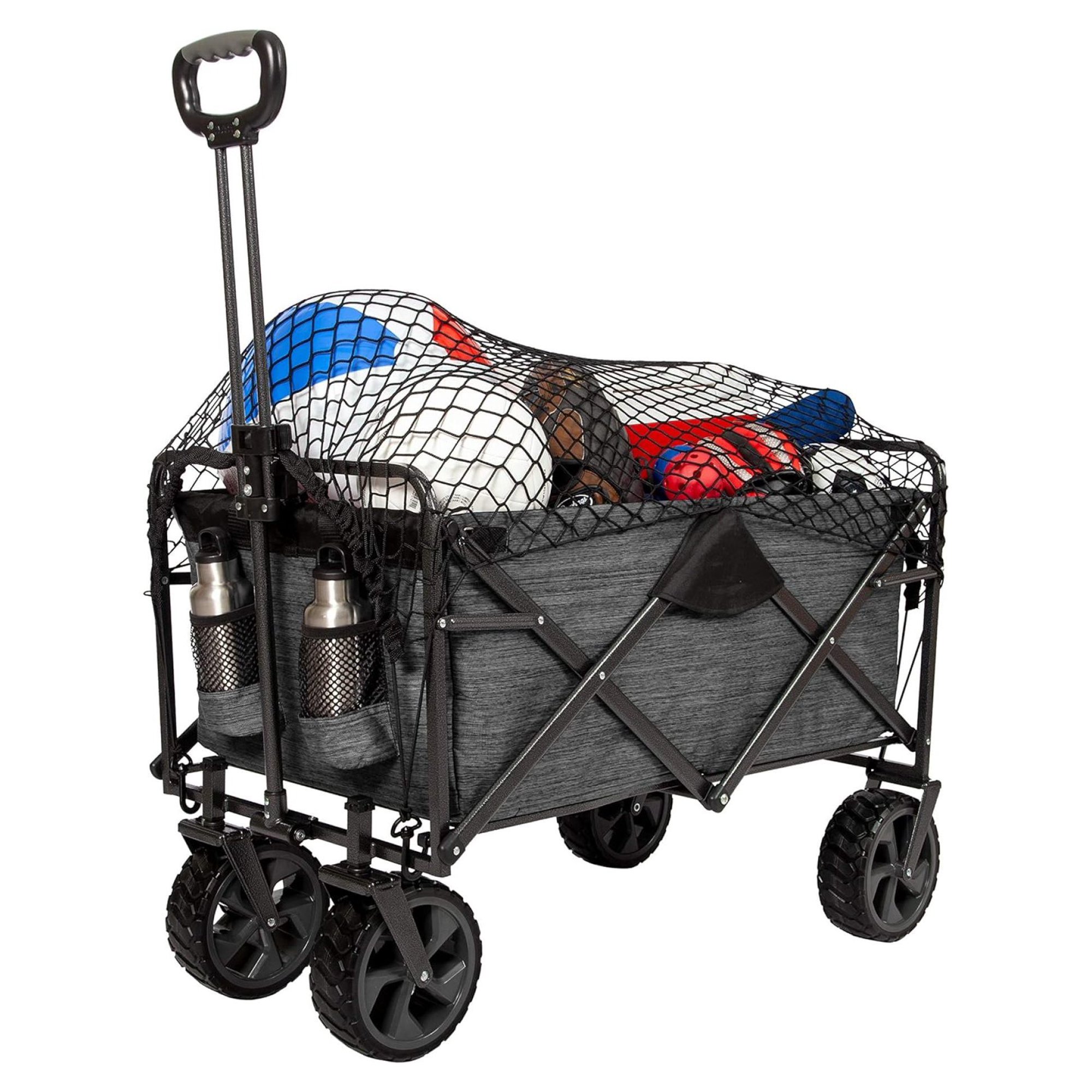 Zazesaby XL Heavy Duty Collapsible Outdoor Folding Camping Gear Grocery Cart Portable Lightweight Utility Adjustable Rolling Cart All Sports Beach Wagon with Cargo Net
