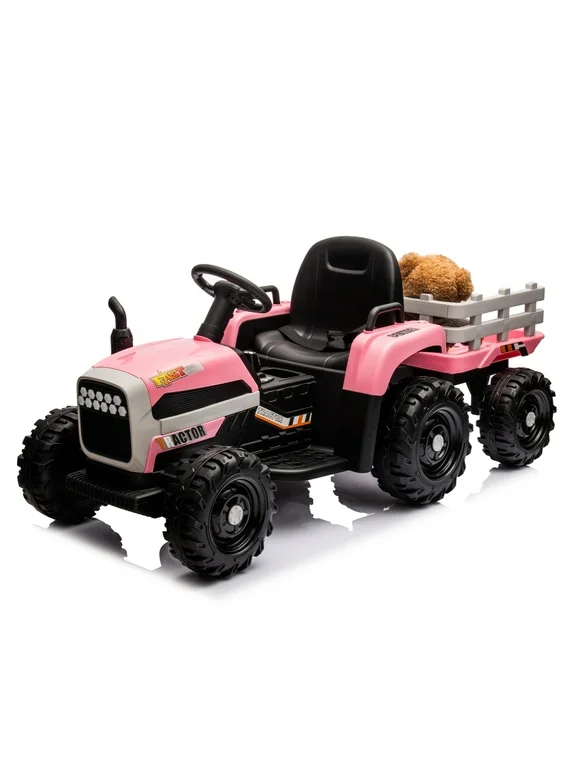 Holaki Ride on Tractor with Trailer, 24V Battery Powered Electric Tractor Toy with Remote Control, Electric Car for Kids, Pink