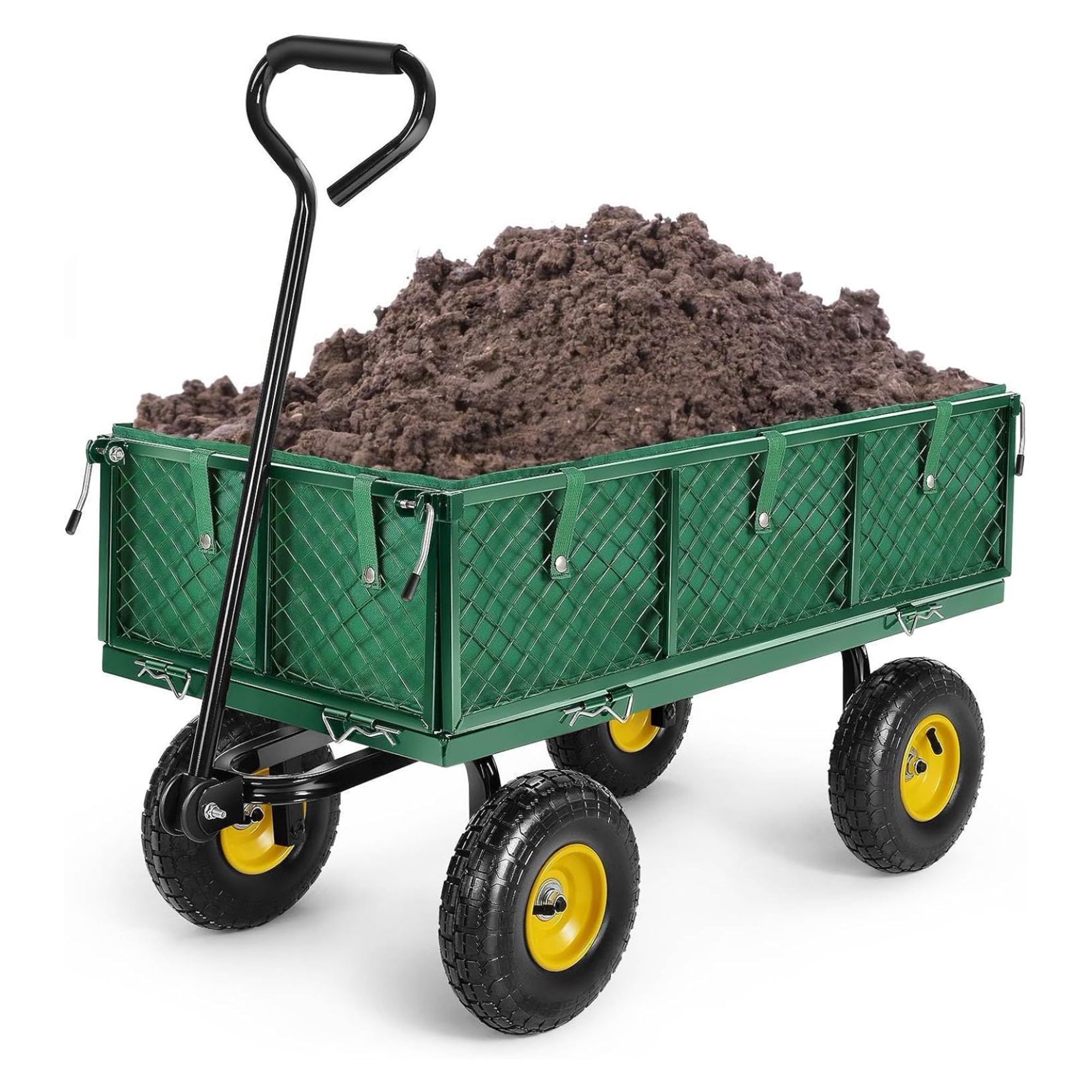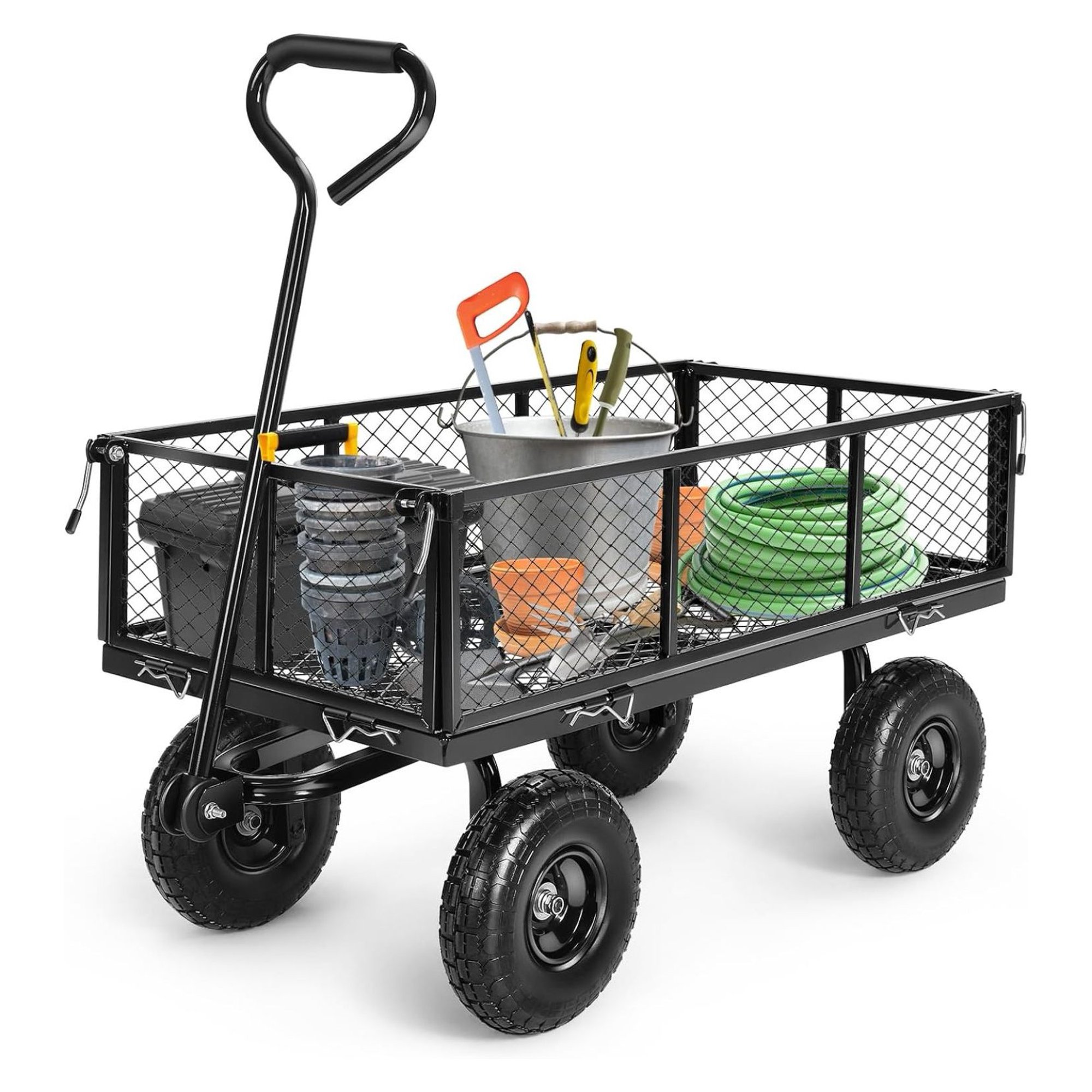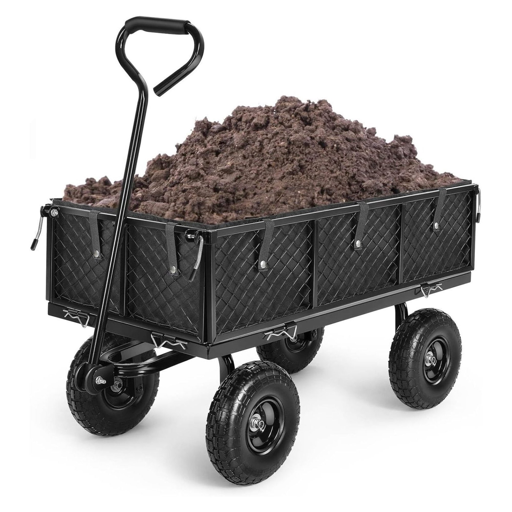 ZanQee Garden Cart, 660Lb Heavy Duty Garden Wagon, Mesh Foldable Garden Cart with 180° Rotating Handle, Pullable Garden Wagon, Detachable Garden Cart for Yard Garden Beach Farm, Black