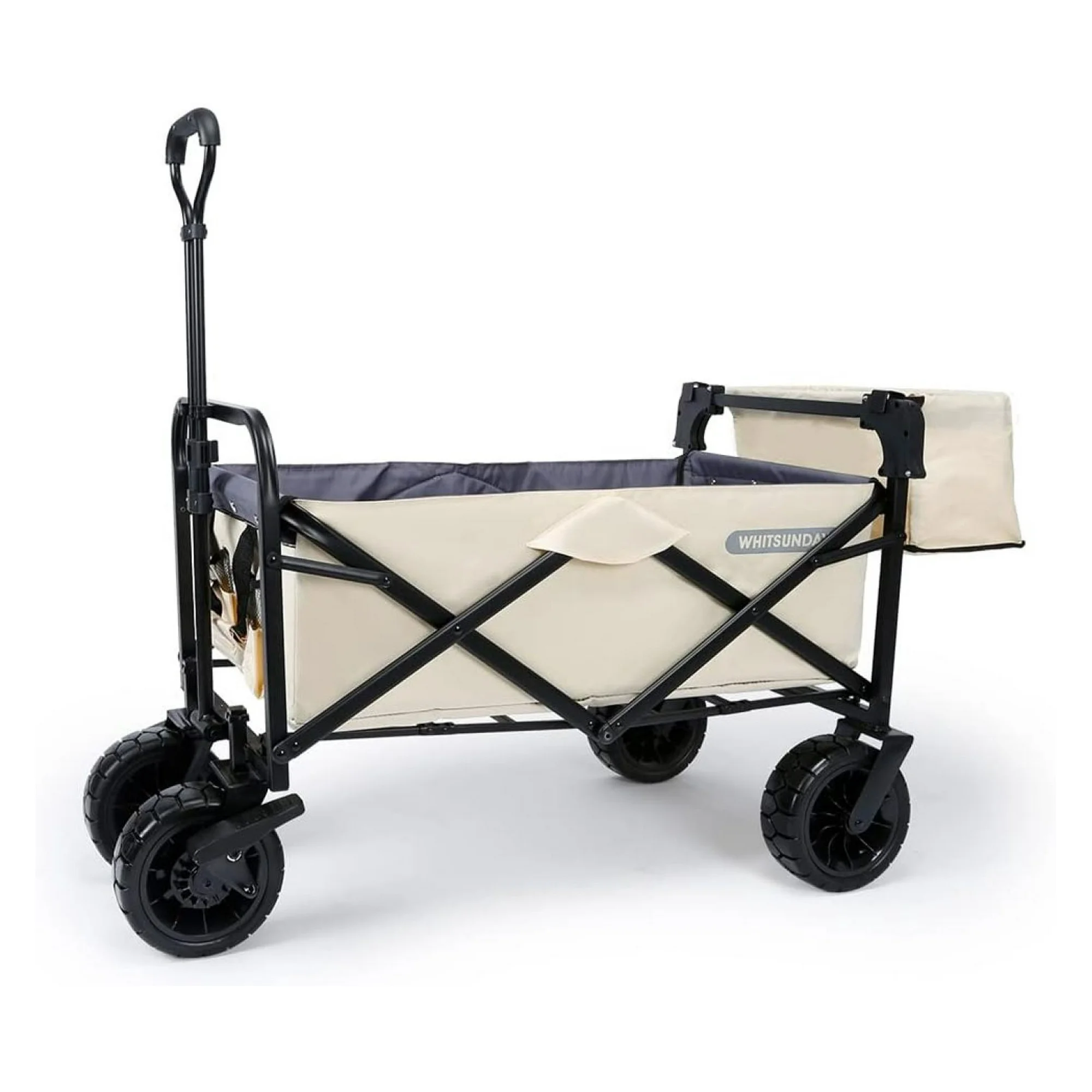 ZanQee Collapsible Folding Garden Outdoor Park Utility Wagon Picnic Camping Cart with Bearing and Brake 8" All Wheels with Rear Storage (Beige)