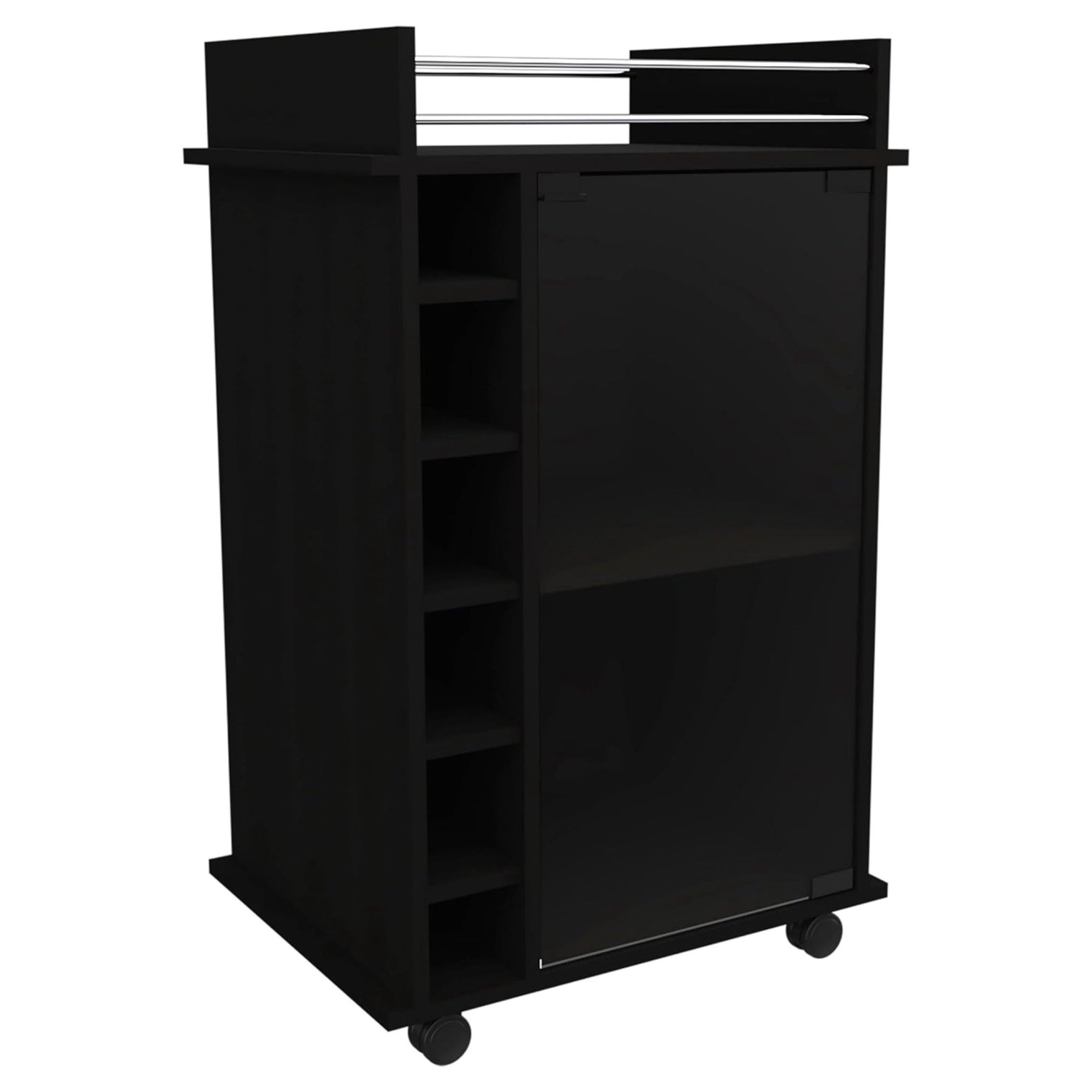 ZanQee Bar Cart, Two External Shelves, Four Casters, Six Built-in Wine Rack, Single Door Cabinet -Black
