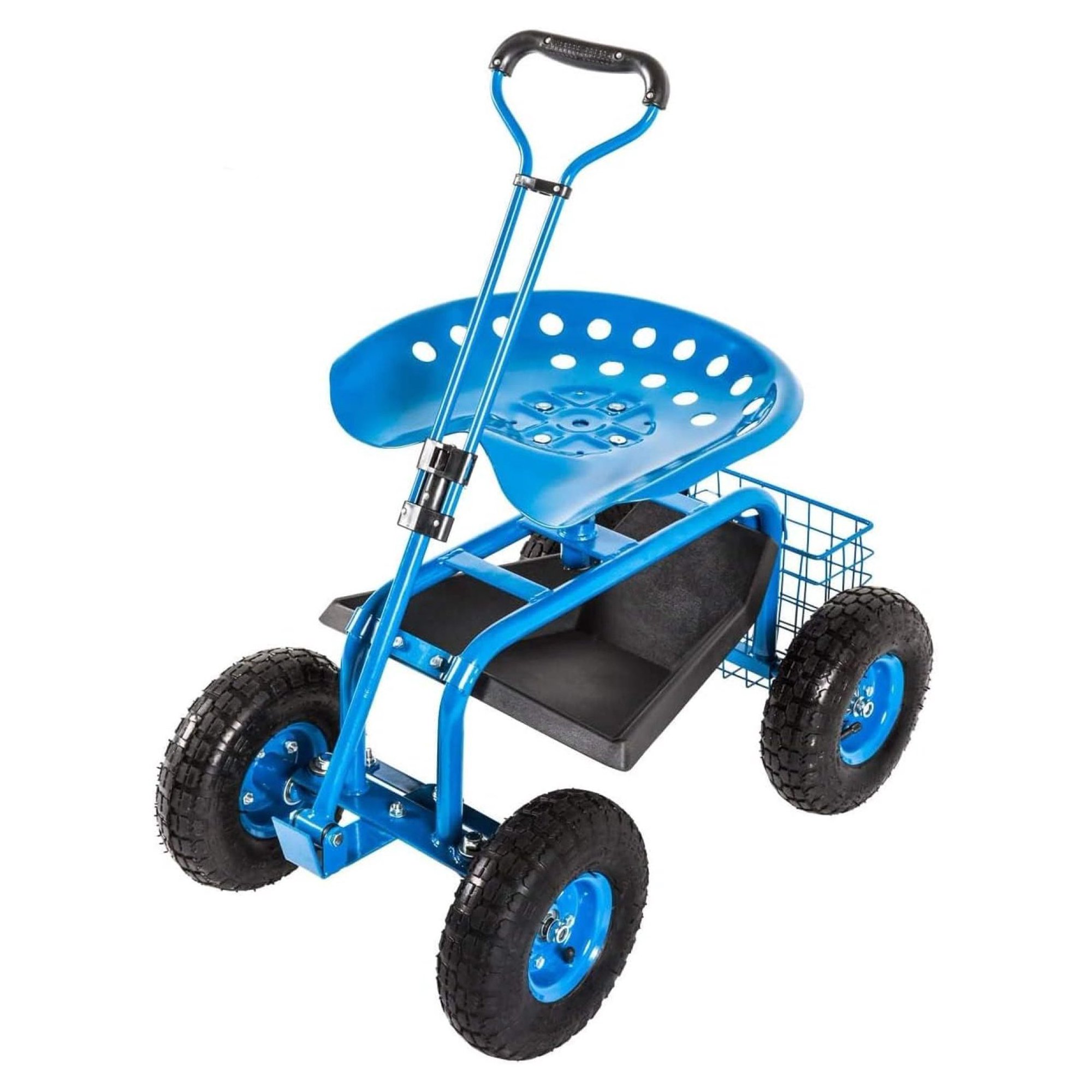 ZanQee Garden Hauling Cart Rolling Work Seat Outdoor Utility Lawn Yard Patio Utility Cart 310 Lbs Load Capacity Adjustable Handle 360 Degree Swivel Seat Blue