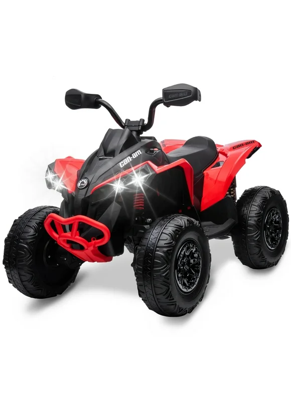 Homhougo—Kids ATV, 12V Ride on Toy Car Bombardier Licensed BRP Can-am 4 Wheeler Quad Electric Vehicle, w/LED Lights, Bluetooth, Music, USB, Treaded Tires, Best Gifts for 3-8 Year Old Boys Girls, Red