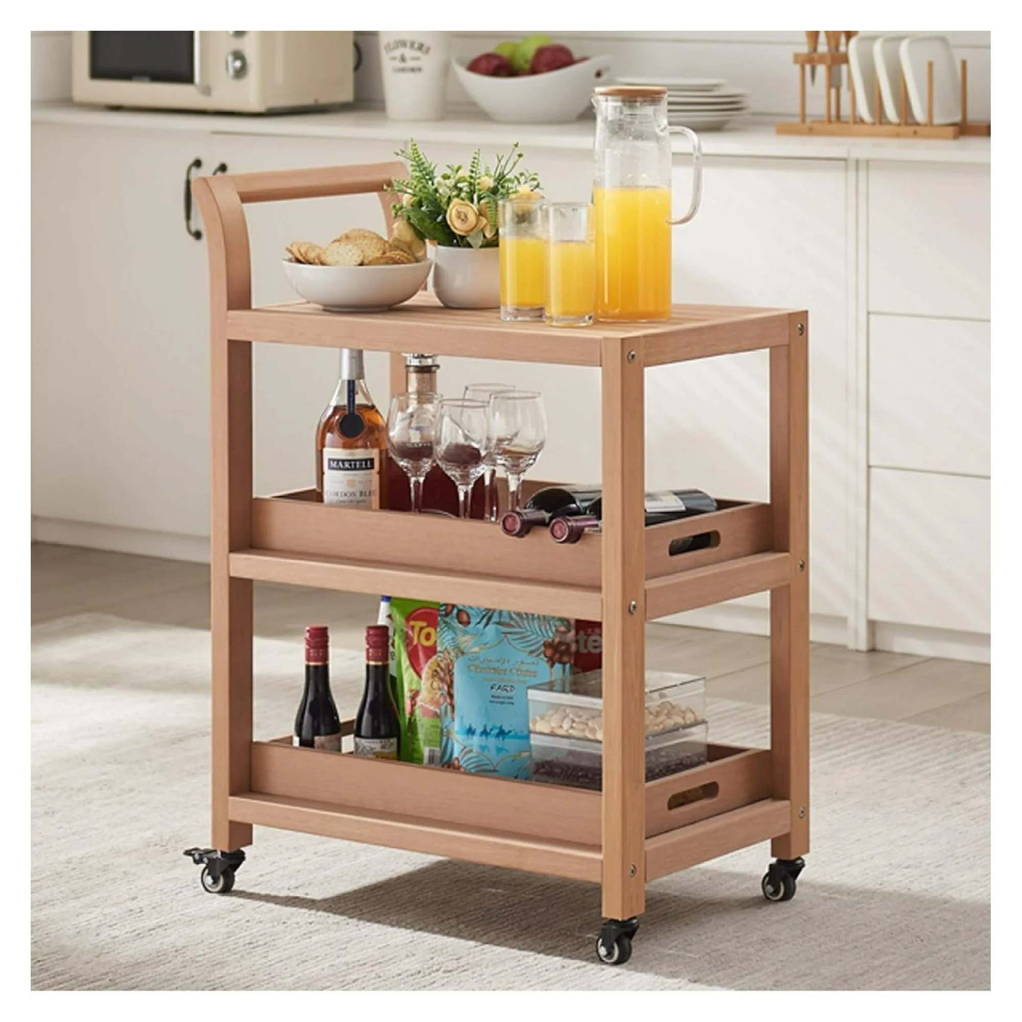 YuraZH Kitchen Cart, Lumber Waterproof Bar Cart with Wheels, Three-Layer Replaceable Trays Position Serving Cart with Wheels, Food Cart with Wheels Suitable for Home and Restaurant (Teak Color)