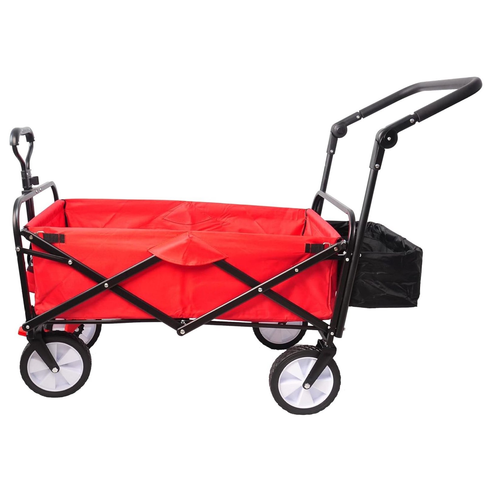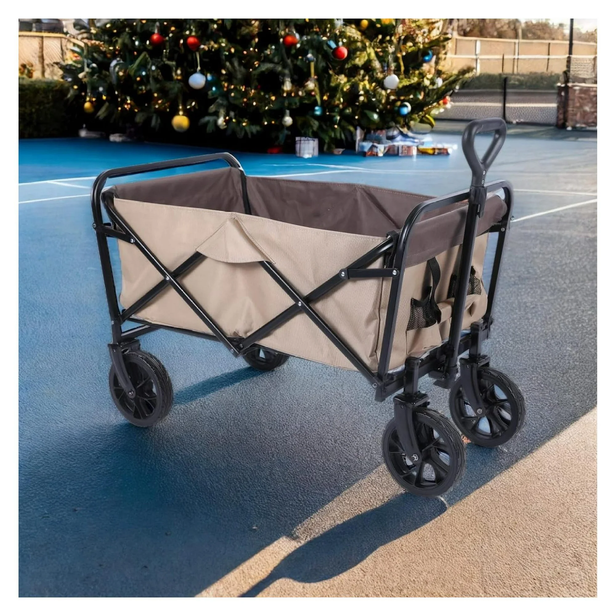 YUNTIE Folding Wagon Collapsible Outdoor Utility Wagon, Heavy Duty Folding Garden Portable Hand Cart, Drink Holder, Adjustable Handles