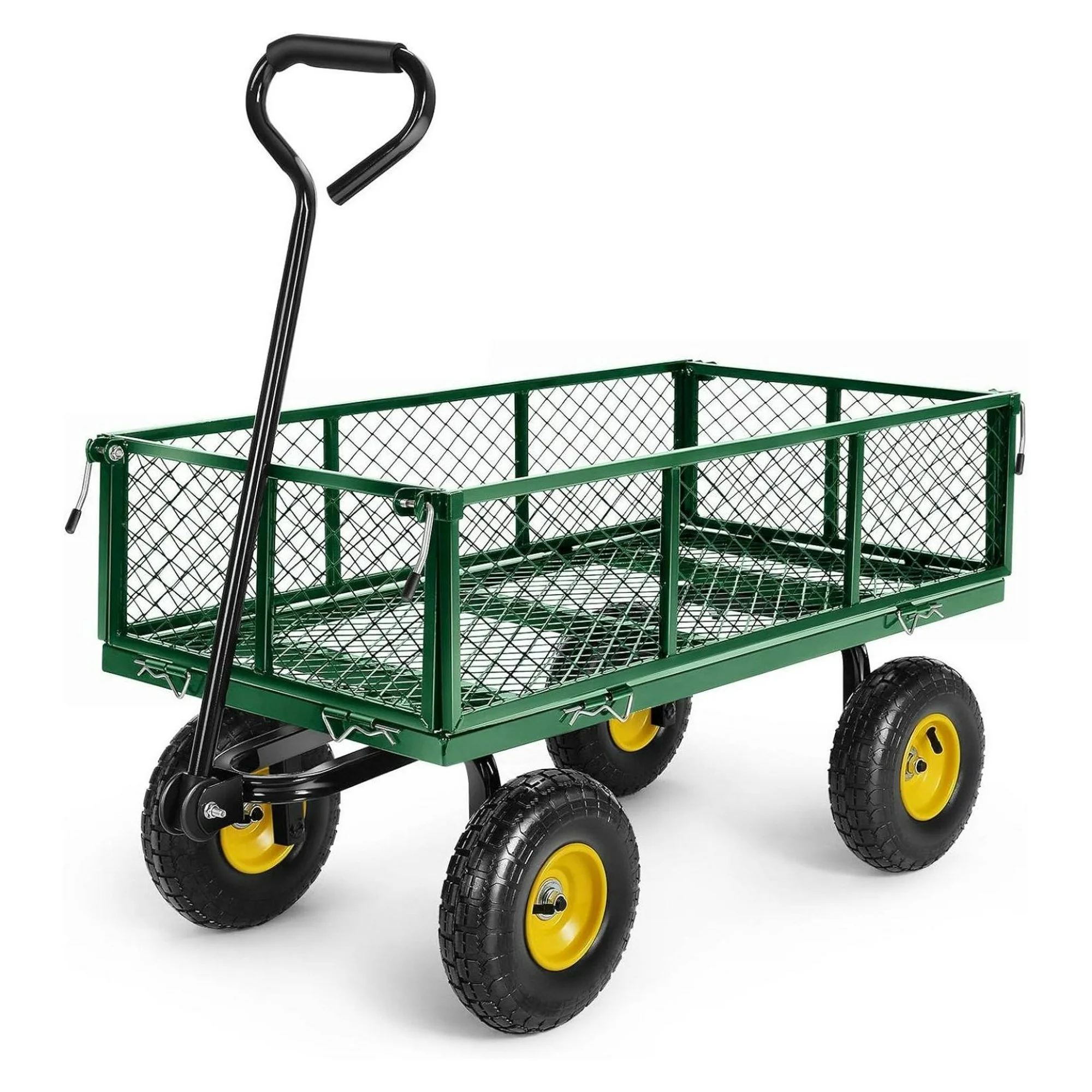 YUNTIE Garden Cart, 660Lb Heavy Duty Garden Wagon, Mesh Foldable Garden Cart with 180 Rotating Handle, Pullable Garden Wagon, Detachable Garden Cart for Yard Garden Beach Farm, Green