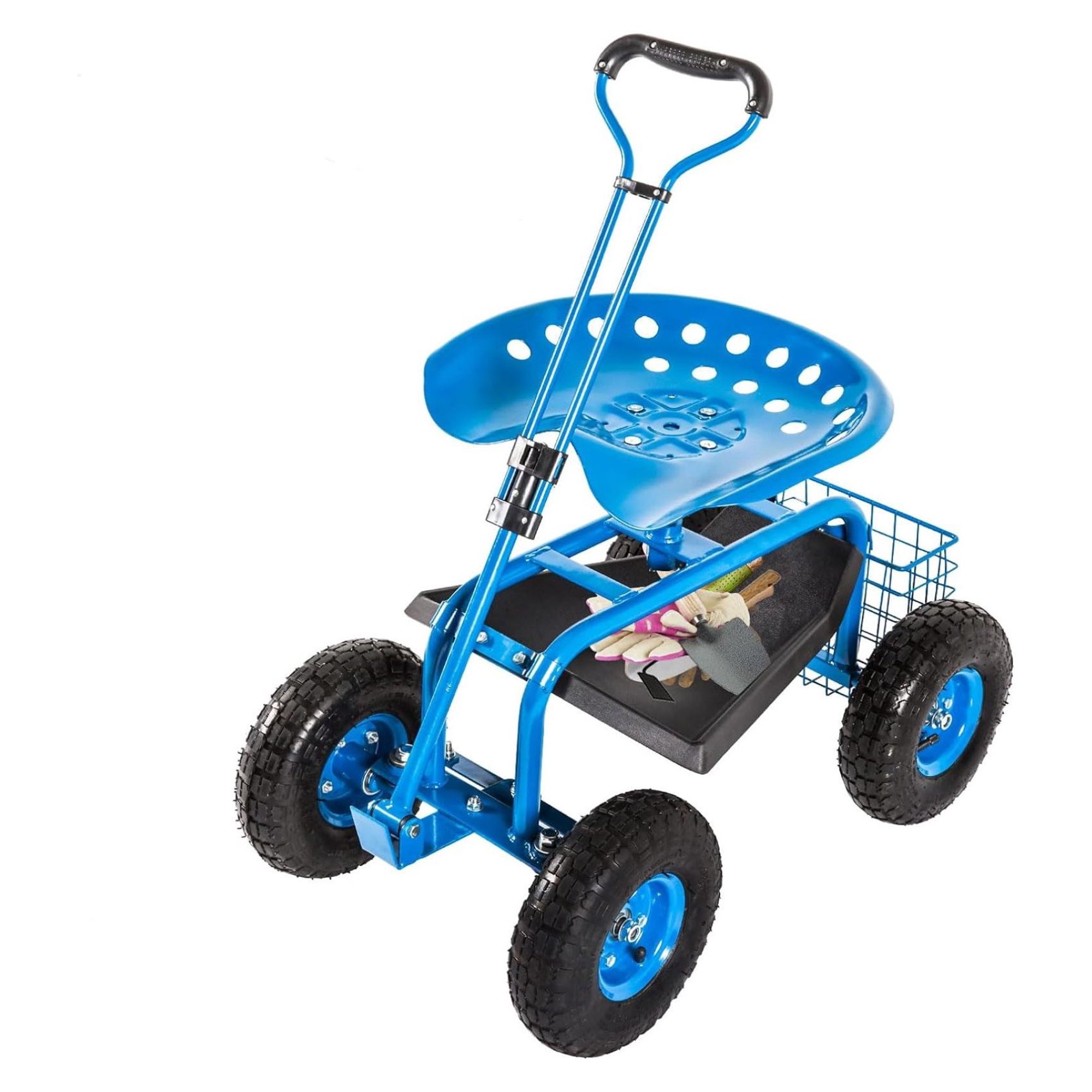 YUNTIE Garden Cart with Seat and Wheels and Storage - Heavy Duty Rolling Steerable Scooter Work Seat Utility Tool Cart - Weight Capacity 330lbs