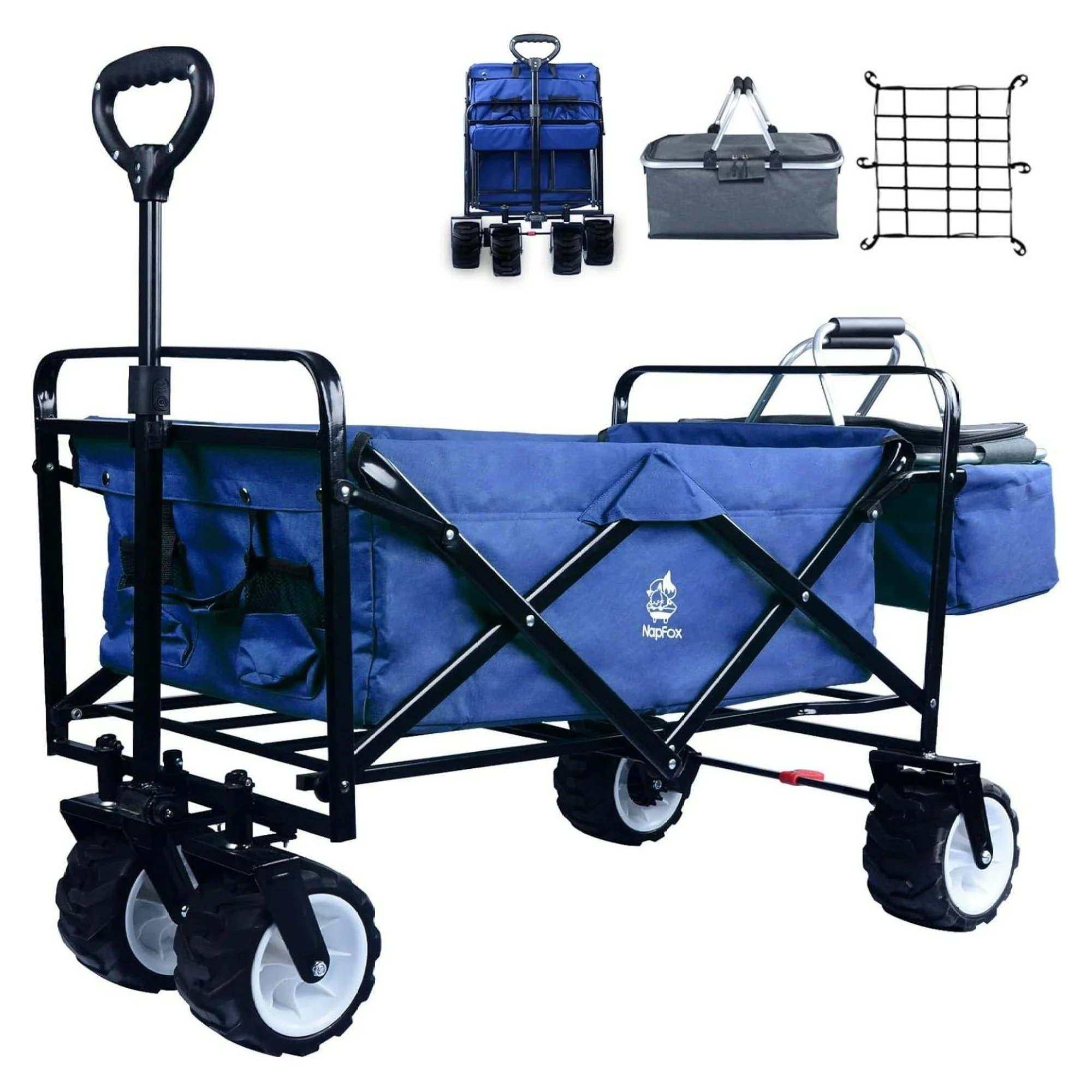 YUNTIE Collapsible Wagon,Wagons Carts Foldable Grocery Cart on Wheels Beach Wagon Foldable Cart with Wheels, Cooler Bag, Cup Holders,Cargo Net,Shopping, Garden,SportsBlue