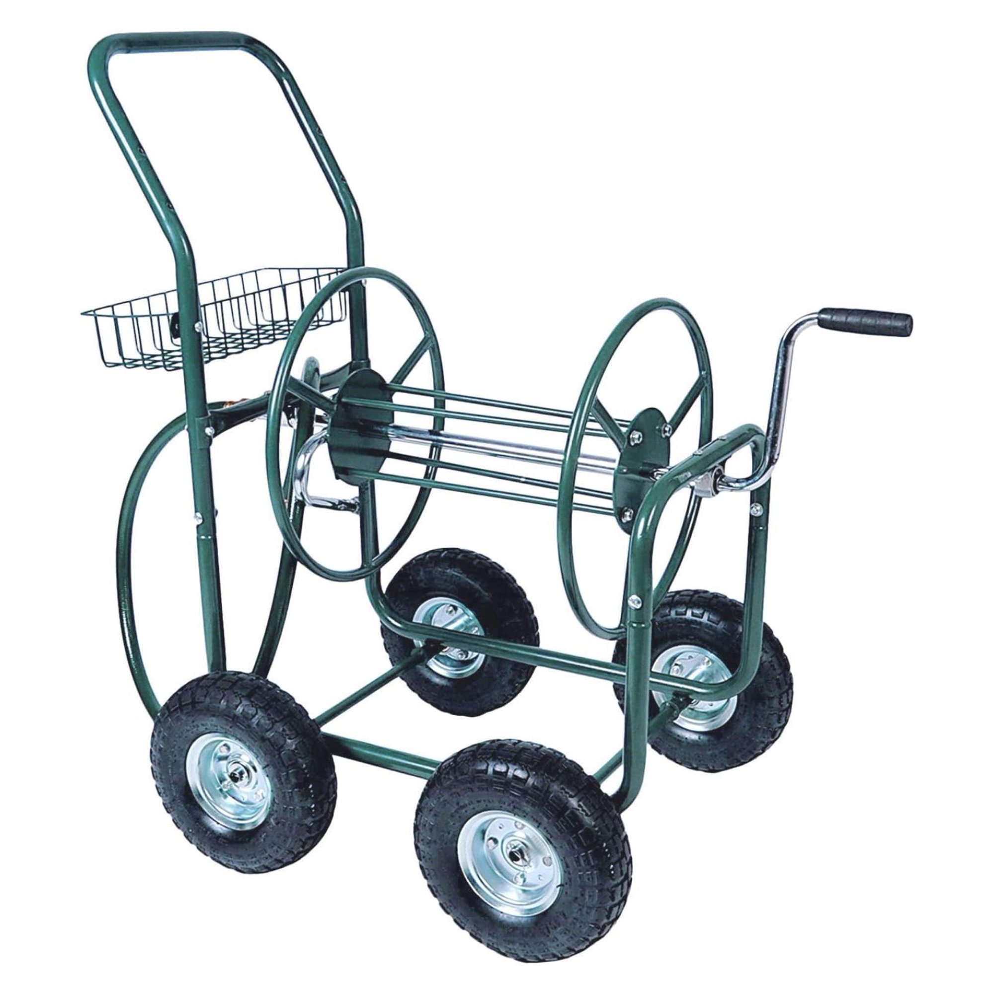 YUNTIE Garden Hose Reel Cart 4 Wheels Portable with Storage BasketRust Resistant Heavy Duty Water Hose Holder