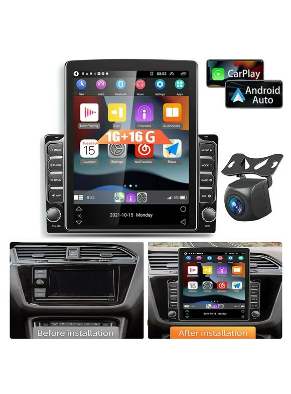 9.7" Car Stereo Radio with CarPlay Android Auto GPS Navigation Bluetooth Radio WiFi SWC MirrorLink Backup Camera 1G RAM+32G ROM,Black