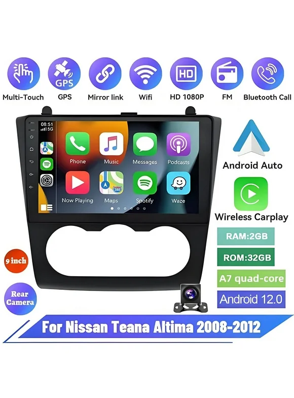 9' Android 13 Car Radio for Nissan Altima Teana 2008 2009 2010 2011 2012 IPS HD Touchscreen Screen Double Din Car Stereo with Carplay & Android Auto Support GPS Navi FM WiFi BT