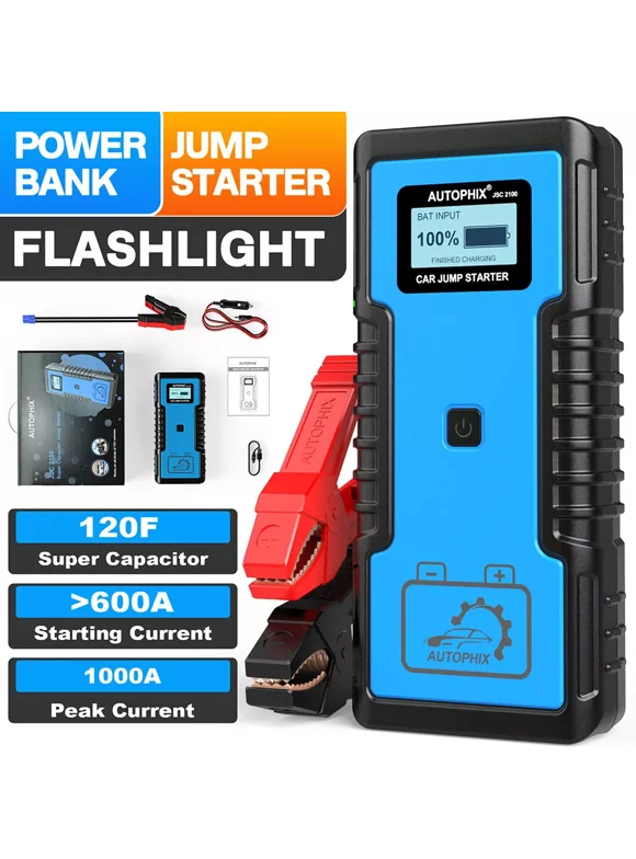 Autophix JSC2100 Super Capacitor 12V Jump Starter No Battery 10.0L Gas & 8.0L Diesel Car Battery Jump Starter Portable Power Supply for Automotives,SUVs,Motorcycles,Vans,Pickup Trucks