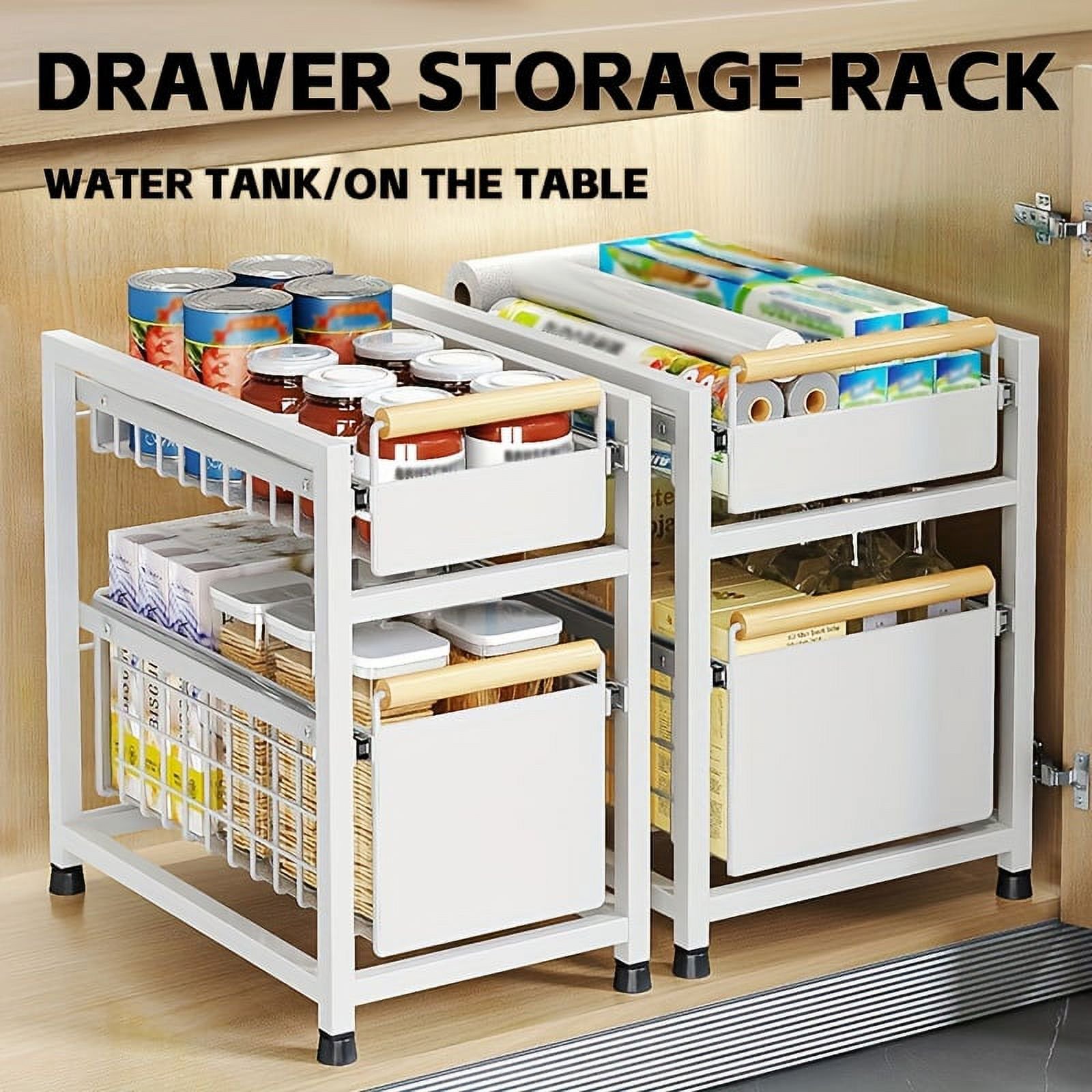 1pc Pull Out Organizer, Carbon Steel Under-sink Drawer Storage Rack, 1/2-Tier Multi-functional Layered Spice Shelf With Wooden Handle, For Kitchen And Bathroom, Home Organizers And Storage, Home Acce