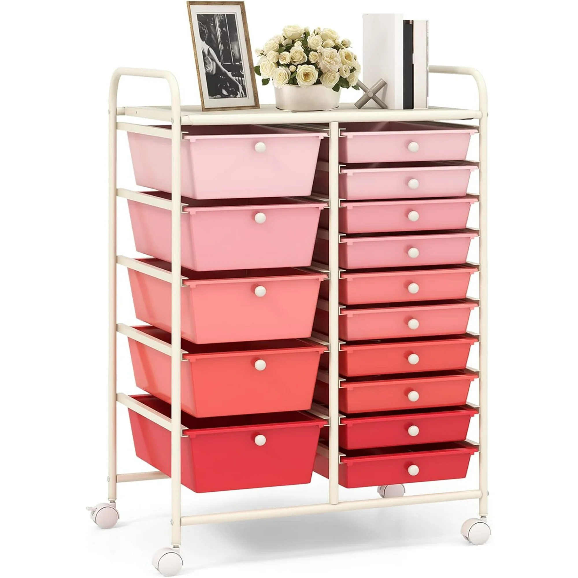 YPDCHBL ZXCERT 15 Drawers Rolling ZXCERT Cart Craft Cart Organizer with Lockable Wheels for Tools Arts Scrapbook Papers Multipurpose Utility Cart for Home Office School (Mixed Color)