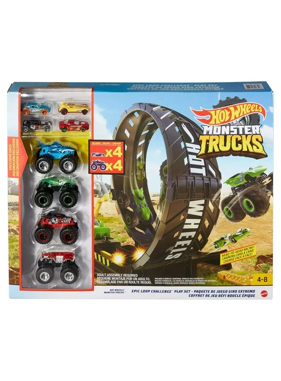 Hot Wheels Monster Trucks Epic Loop Challenge Set with 4 Cars & 4 Monster Trucks
