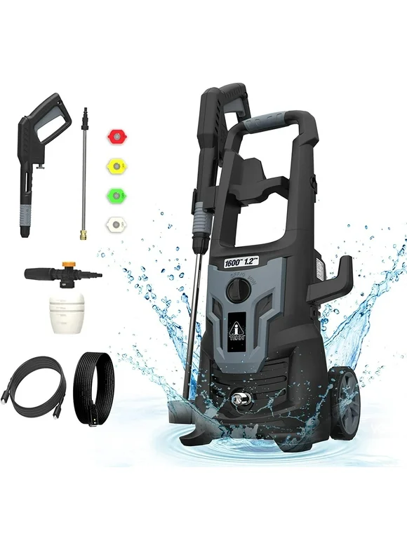 A-iTech 1600 PSI 1.2 GPM Electric Pressure Power Wash Machine with Detergent Tank and Adjustable Nozzles for Home Use Cars/Garden/Patios/Driveways Cleaning (AT30-51601)