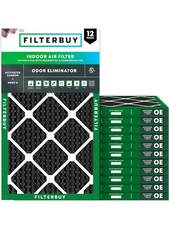 Filterbuy 14x25x1 MERV 8 Odor Eliminator Pleated HVAC AC Furnace Air Filters with Activated Carbon (12-Pack)
