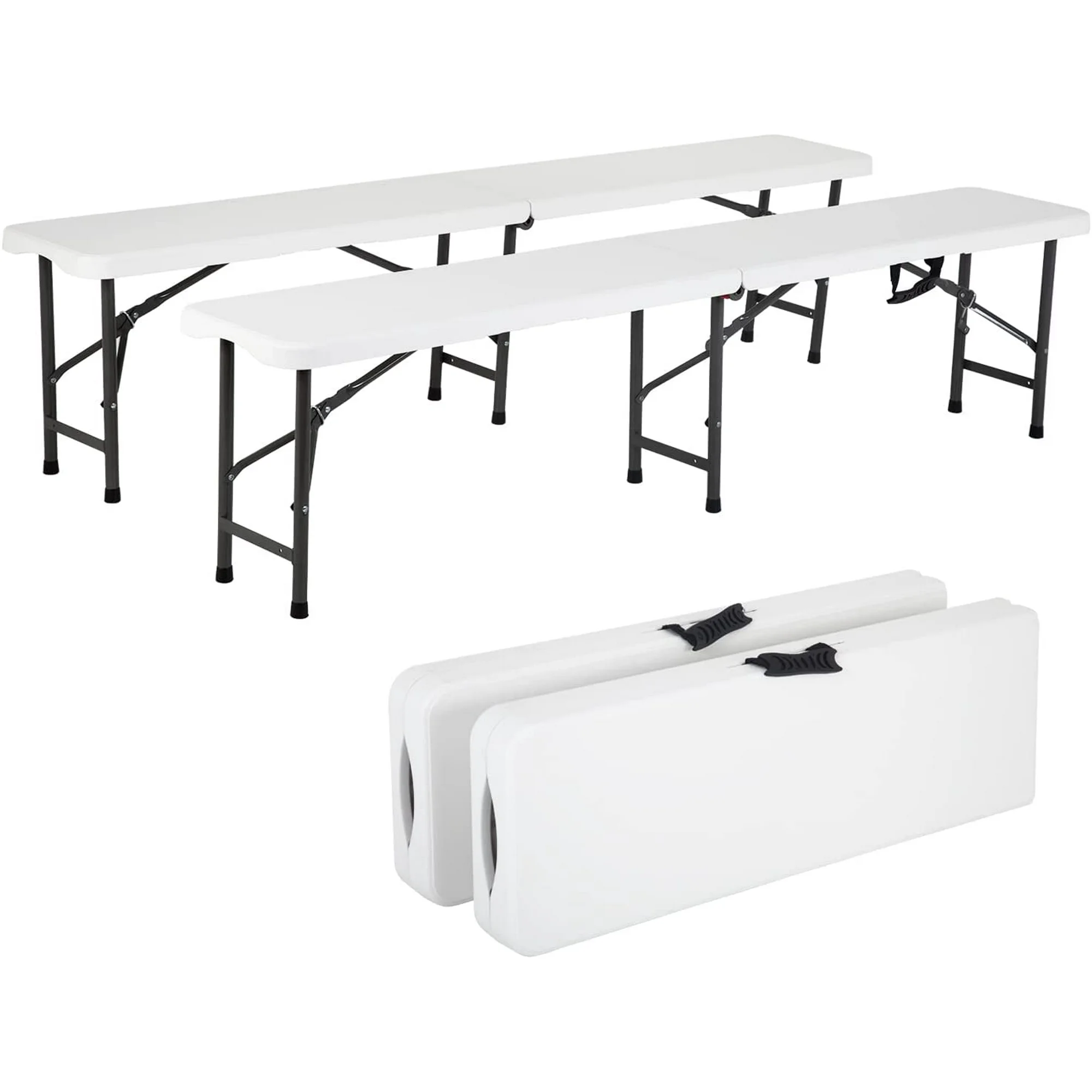6FT Bench Chair Plastic Folding Bench Plastic Portable Outdoor Bench Garden Bench With Carrying Handle And Lock for Camping Picnic Party Dining 2 Pack White