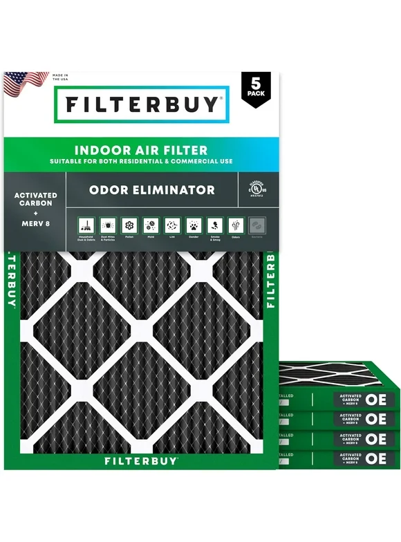 Filterbuy 16x18x1 MERV 8 Odor Eliminator Pleated HVAC AC Furnace Air Filters with Activated Carbon (5-Pack)