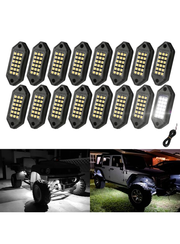 SUNPIE White Rock Lights, STF916 Pods LED Rock Lights Underglow kit IP67 Waterproof Underglow Light kit for Trucks Car Jeep ATV UTV SUV Pickup Off Road RZR Under Body Glow Light Trail Lighting