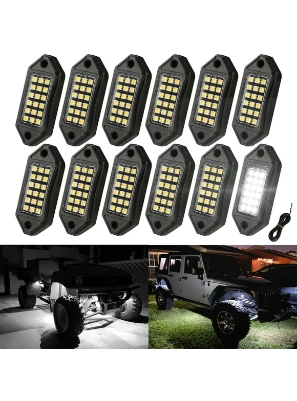 SUNPIE White Rock Lights, 12 Pods LED Rock Lights Underglow kit IP67 Waterproof Light kit for Trucks Car Jeep ATV UTV SUV Pickup Off Road RZR Under Body Glow Light Trail Lighting C11